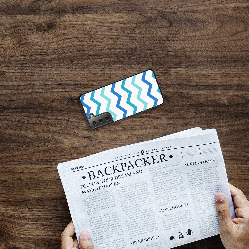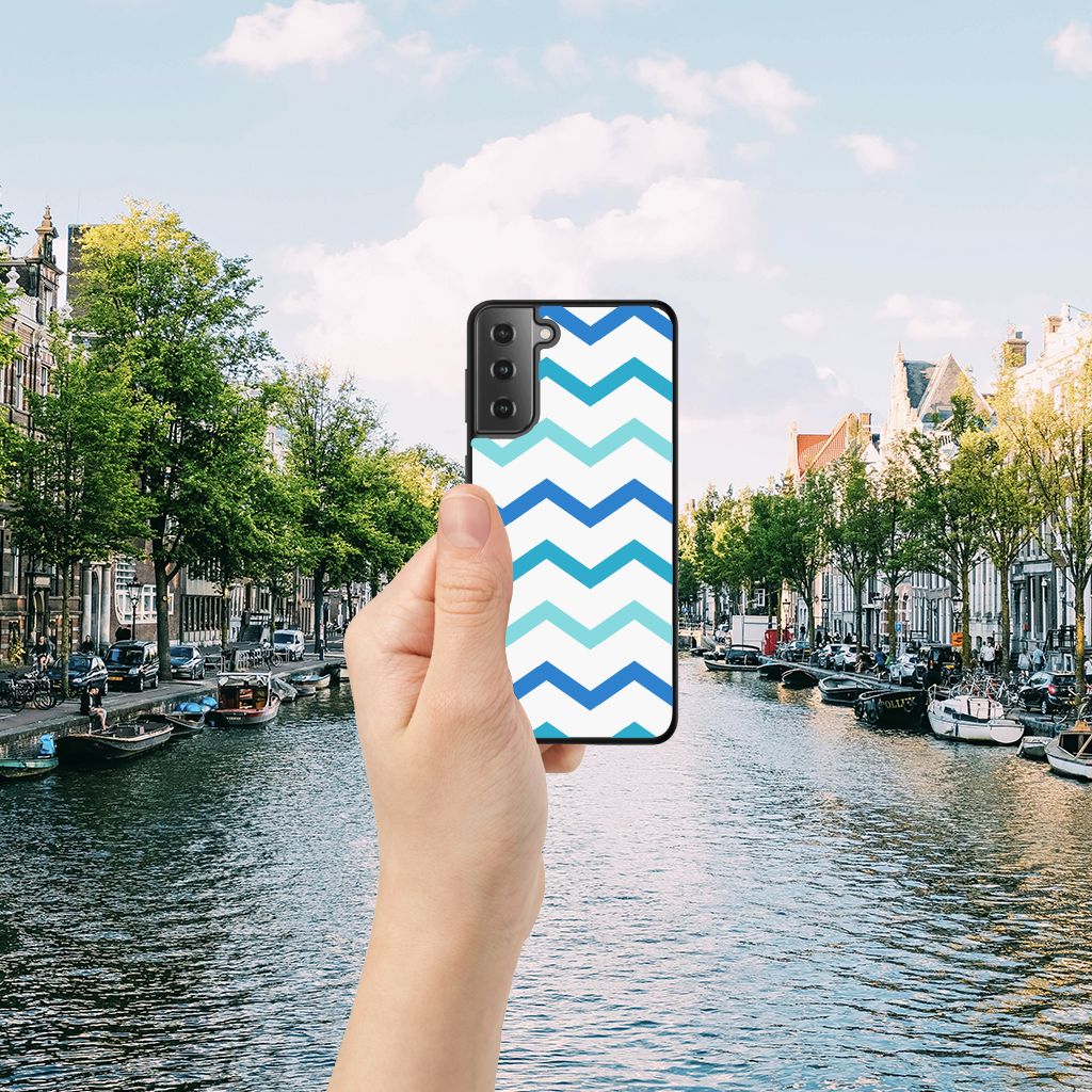 Samsung Galaxy S21 Back Case Zigzag Blauw