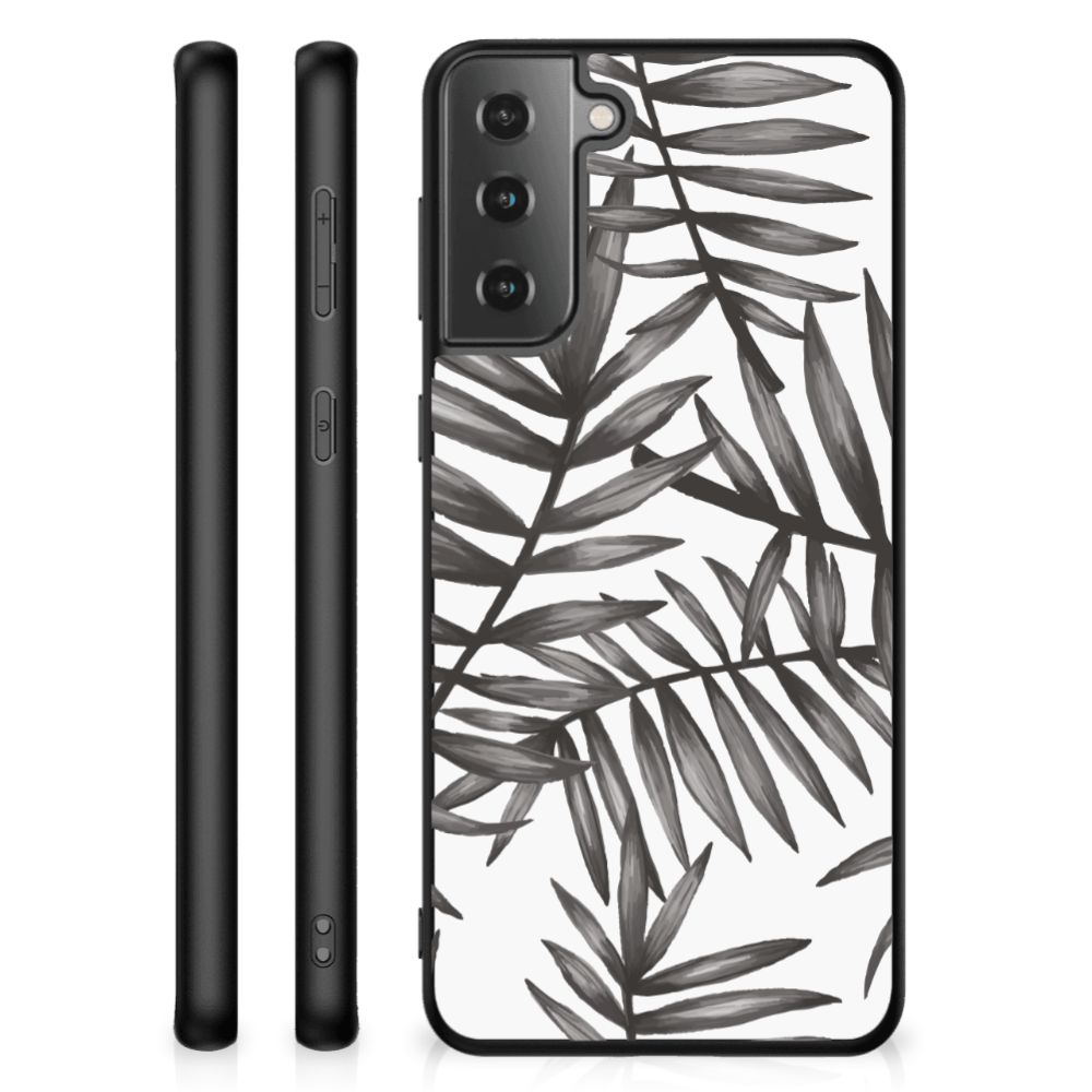 Samsung Galaxy S21 Bloemen Hoesje Leaves Grey