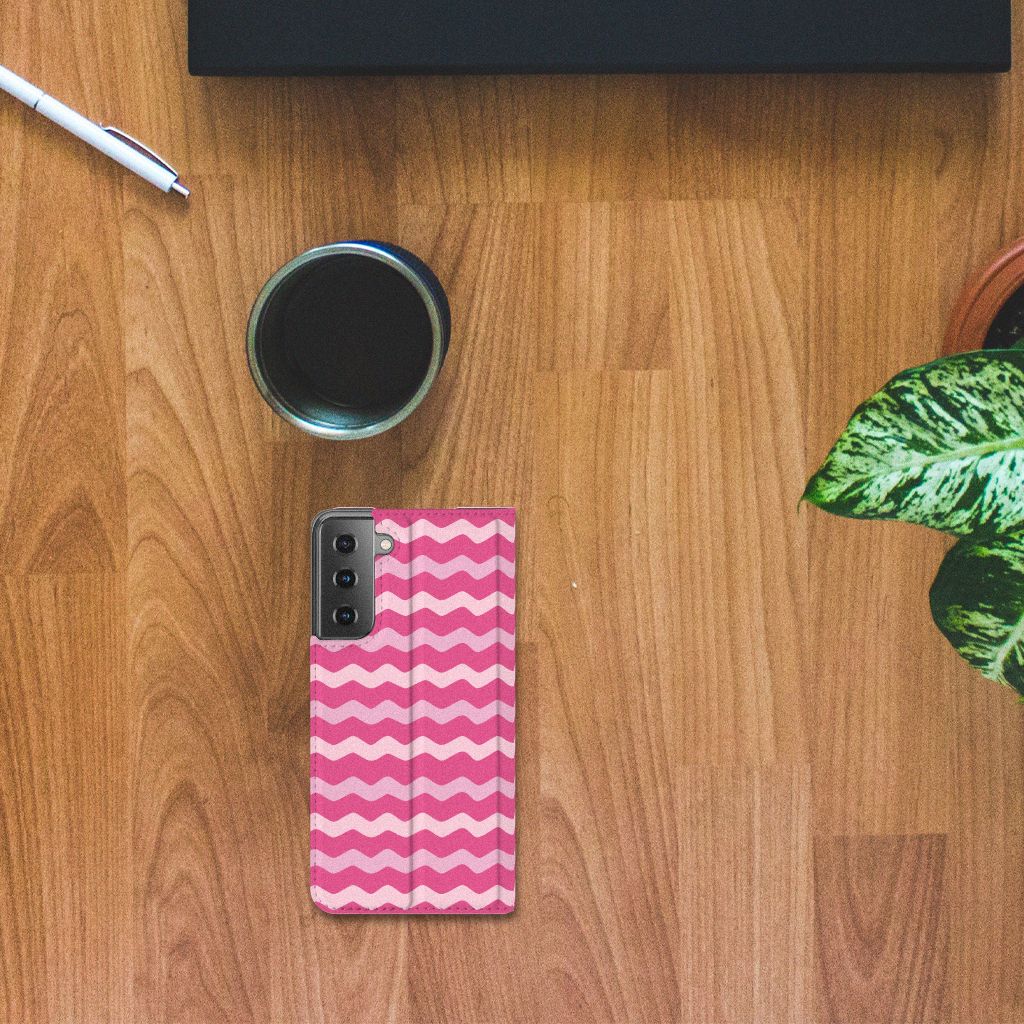 Samsung Galaxy S21 Hoesje met Magneet Waves Pink