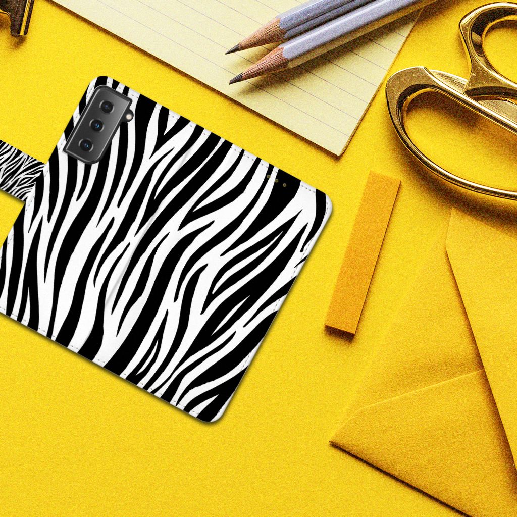 Samsung Galaxy S21 Telefoonhoesje met Pasjes Zebra