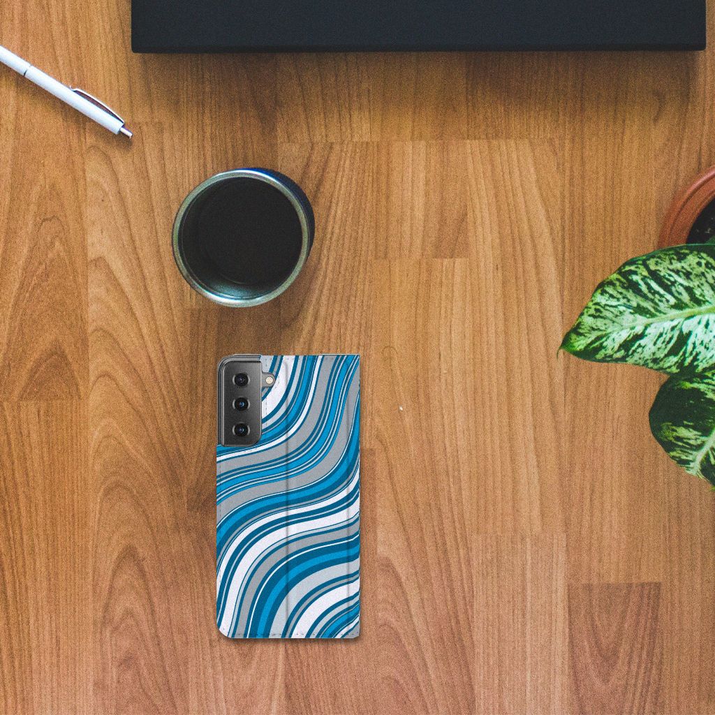 Samsung Galaxy S21 Hoesje met Magneet Waves Blue