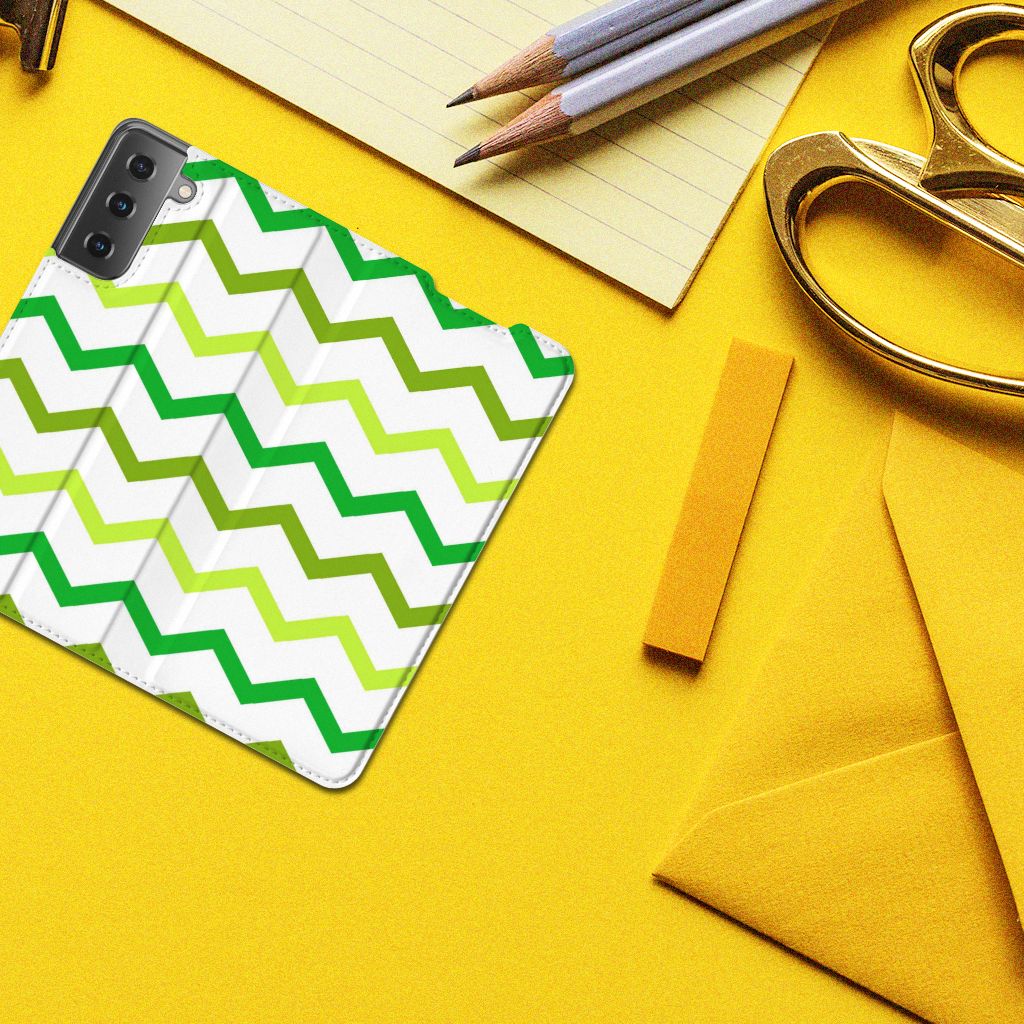 Samsung Galaxy S21 Hoesje met Magneet Zigzag Groen
