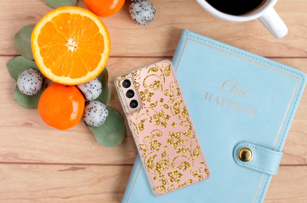 Samsung Galaxy S21 TPU Case Gouden Bloemen