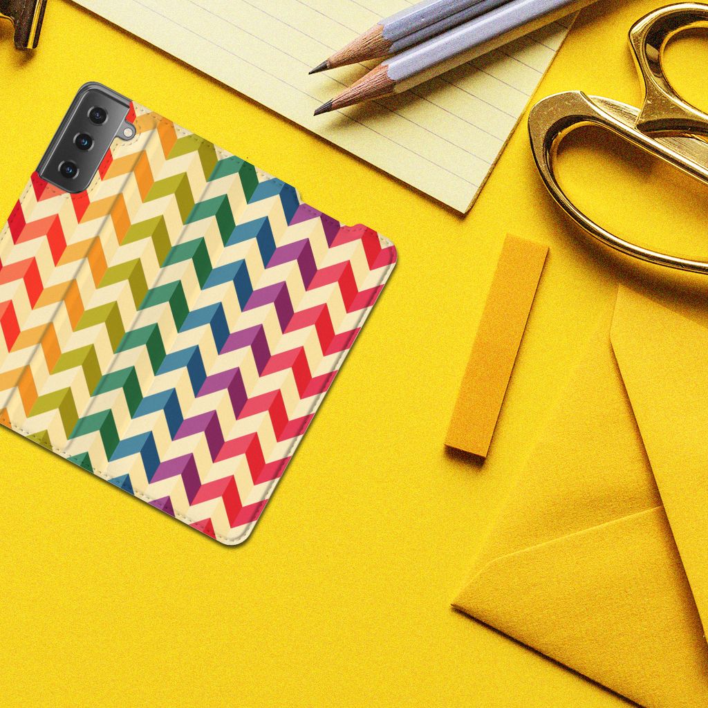 Samsung Galaxy S21 Hoesje met Magneet Zigzag Multi Color