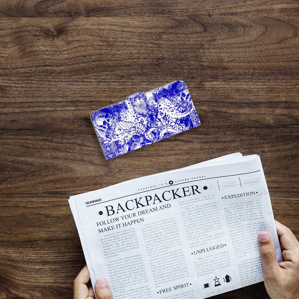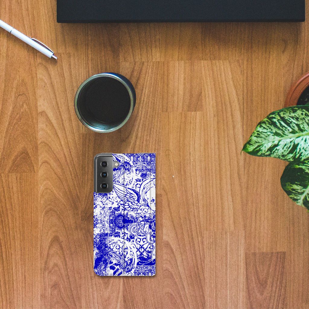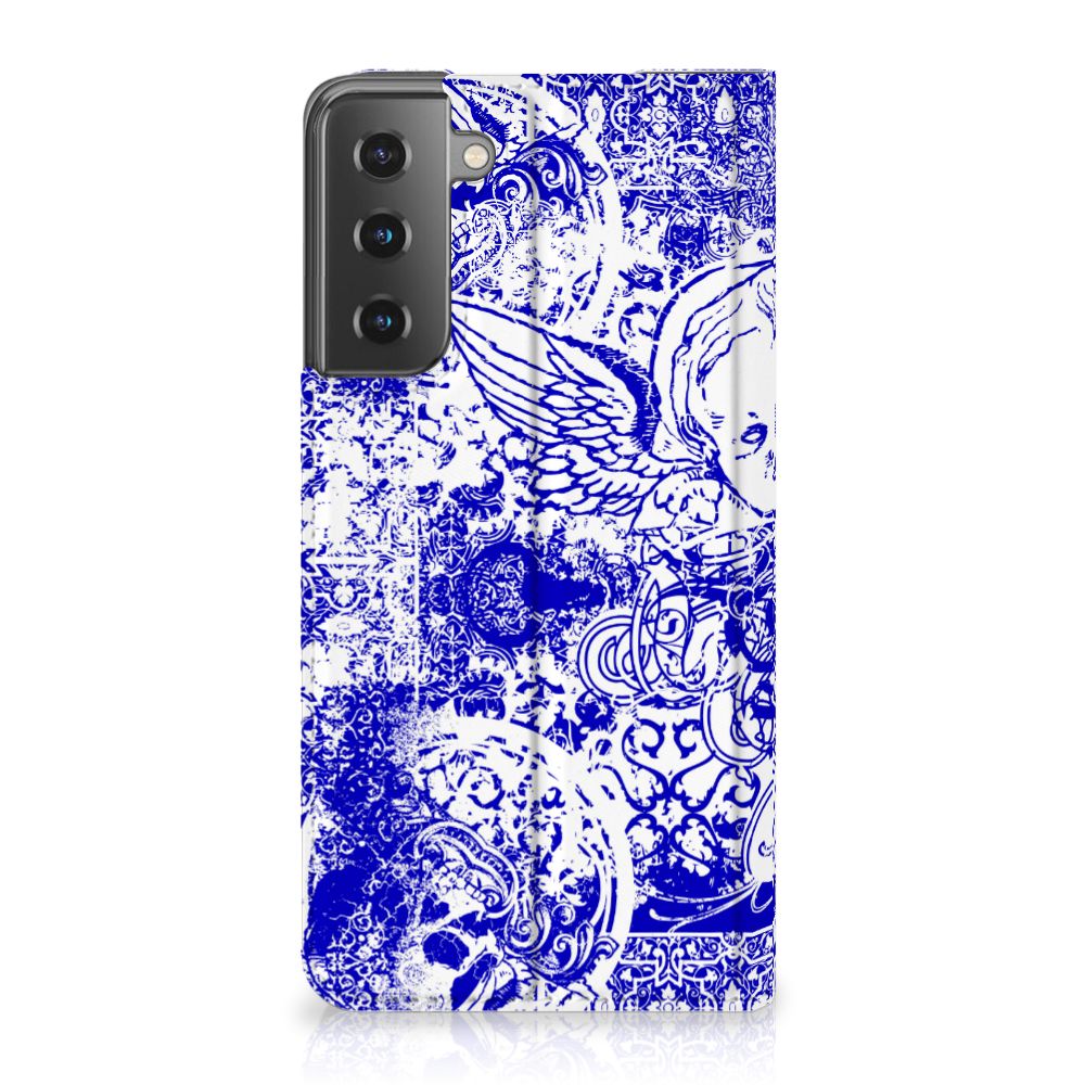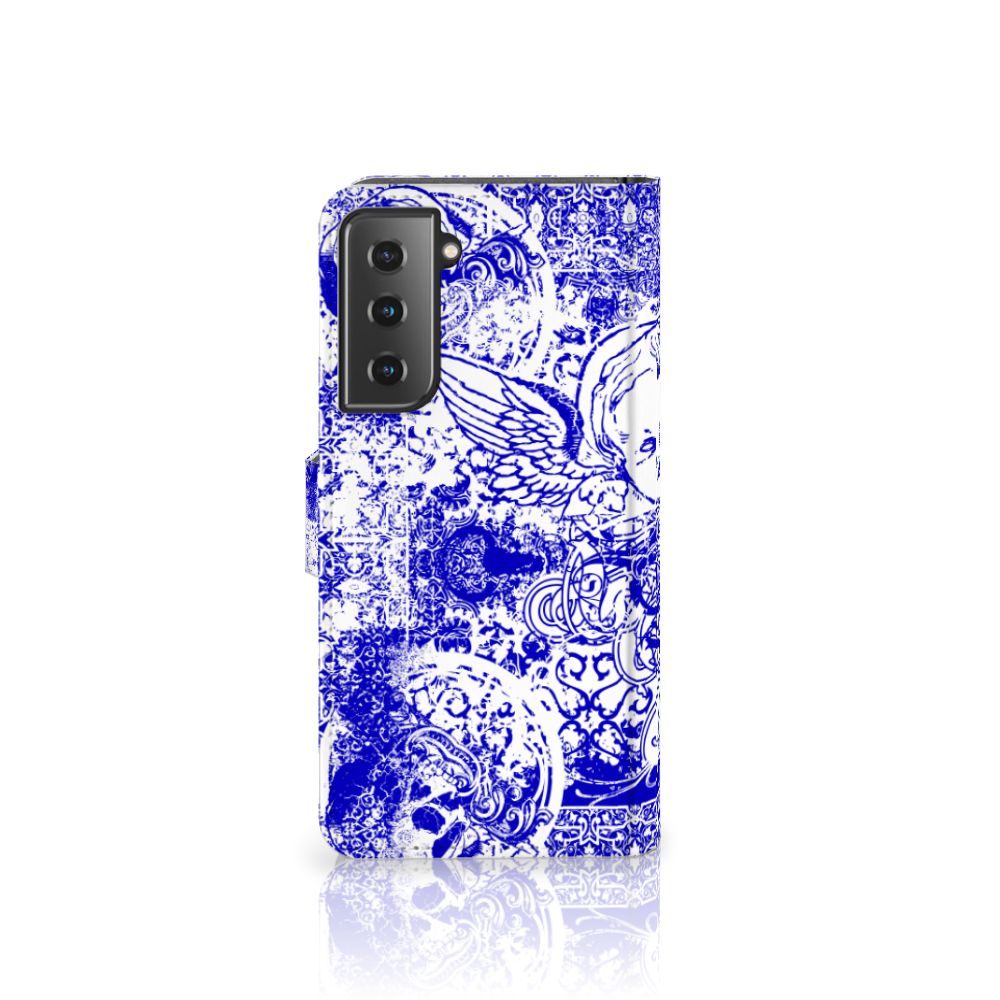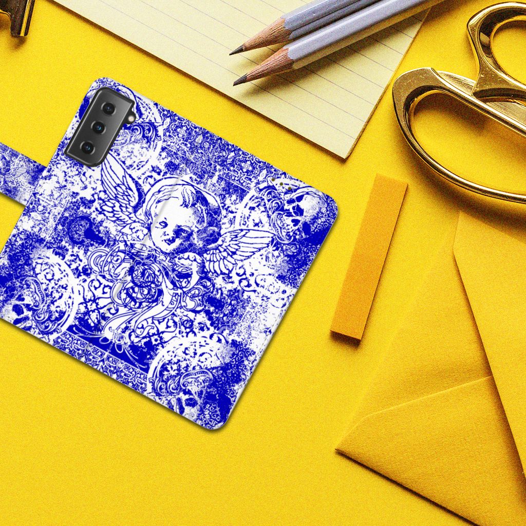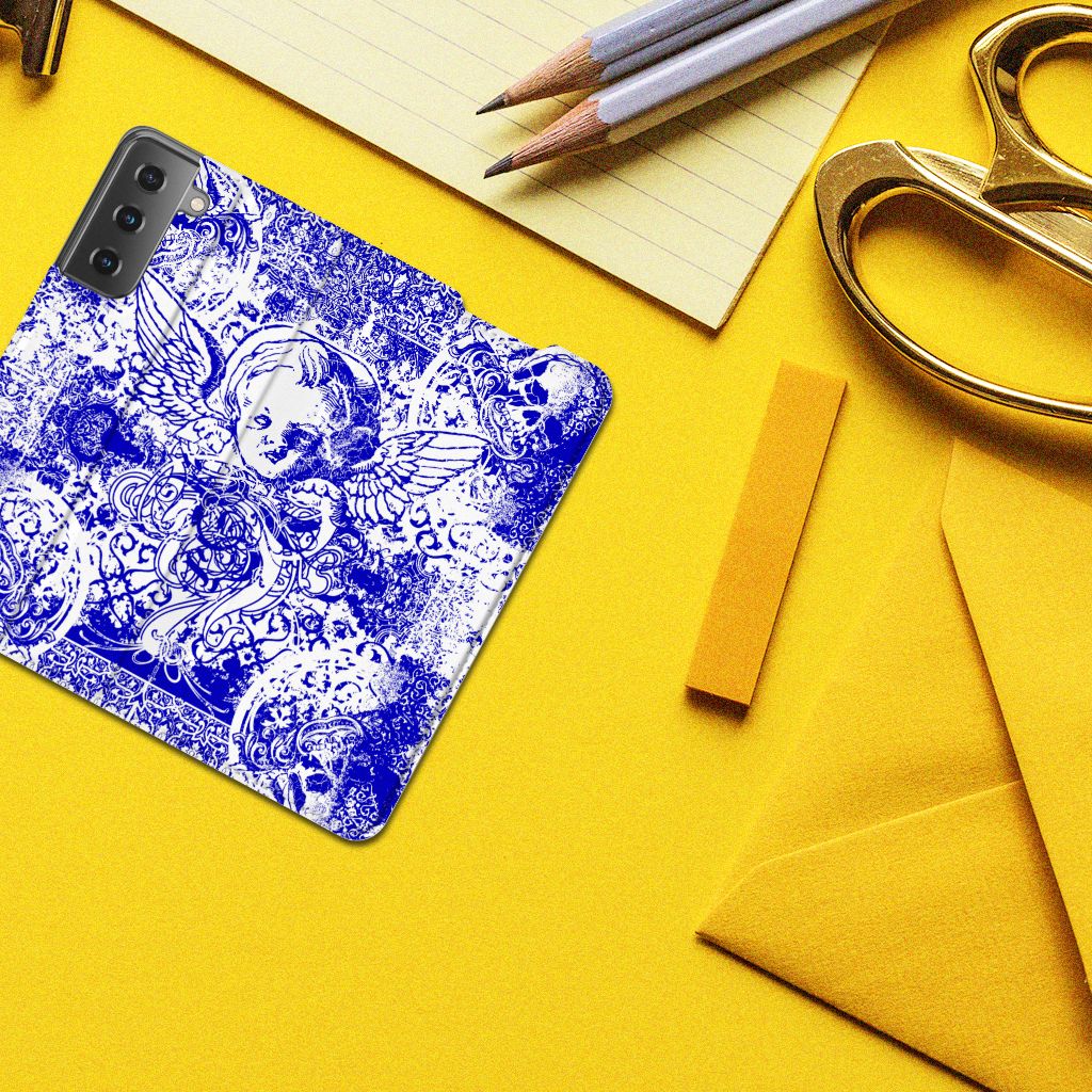 Mobiel BookCase Samsung Galaxy S21 Angel Skull Blauw