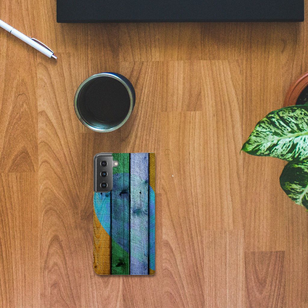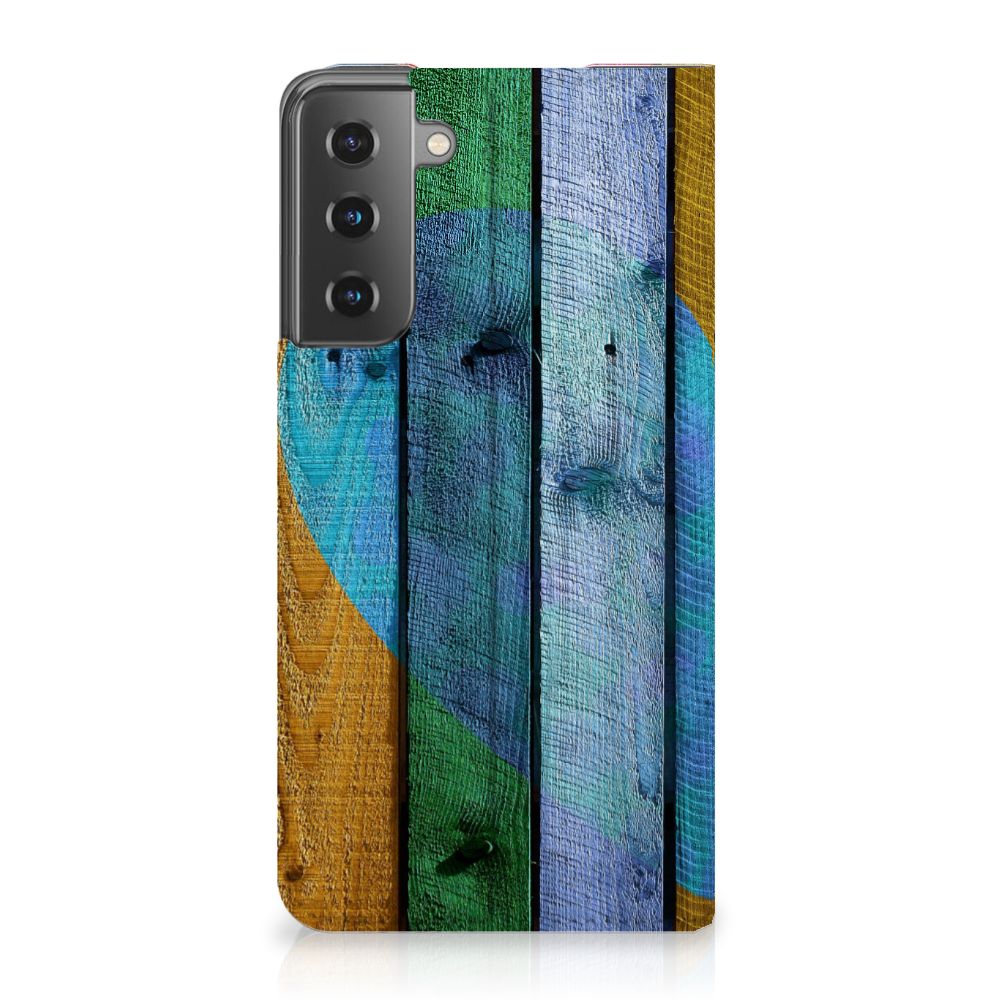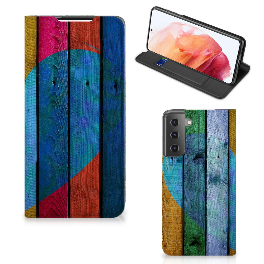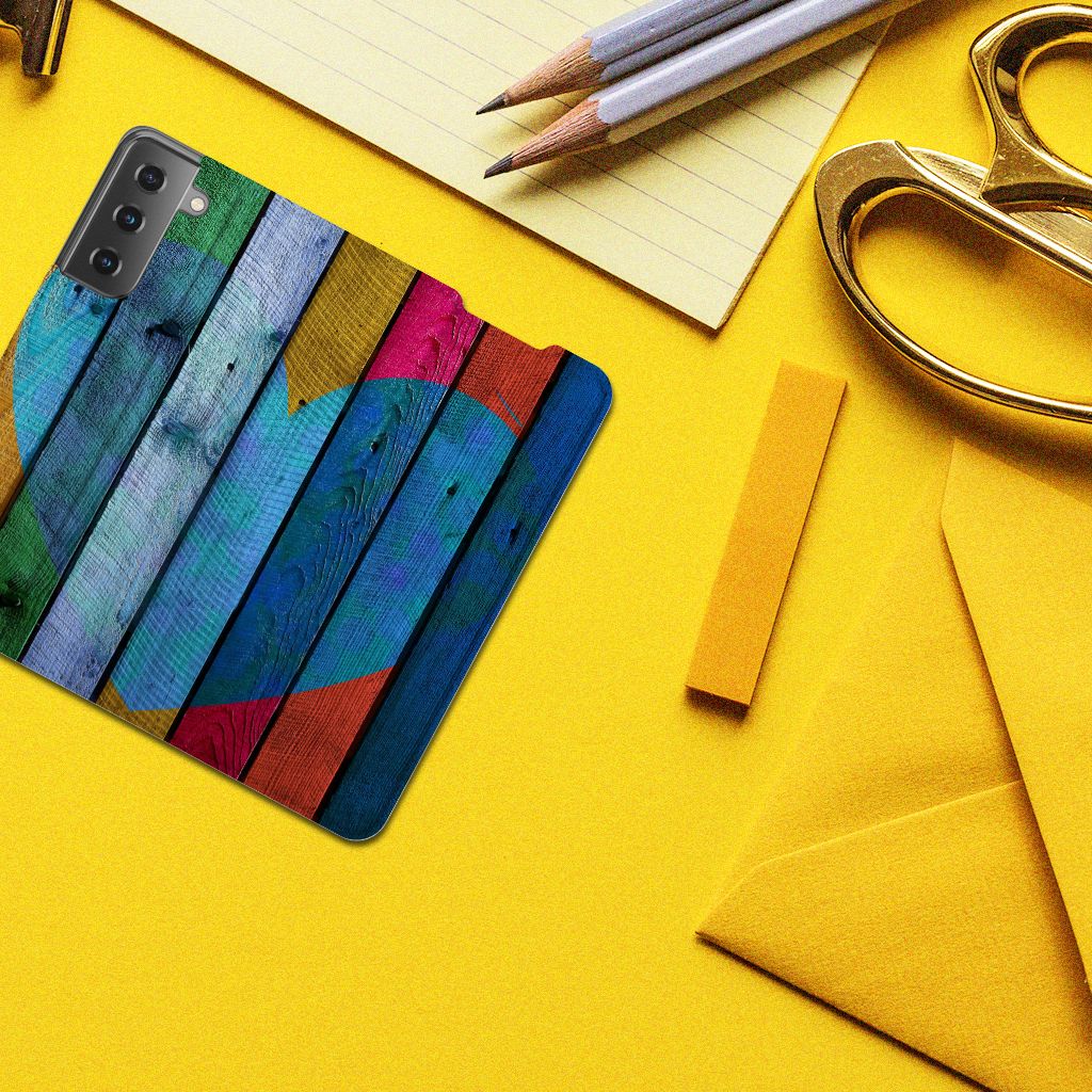 Samsung Galaxy S21 Book Wallet Case Wood Heart - Cadeau voor je Vriend