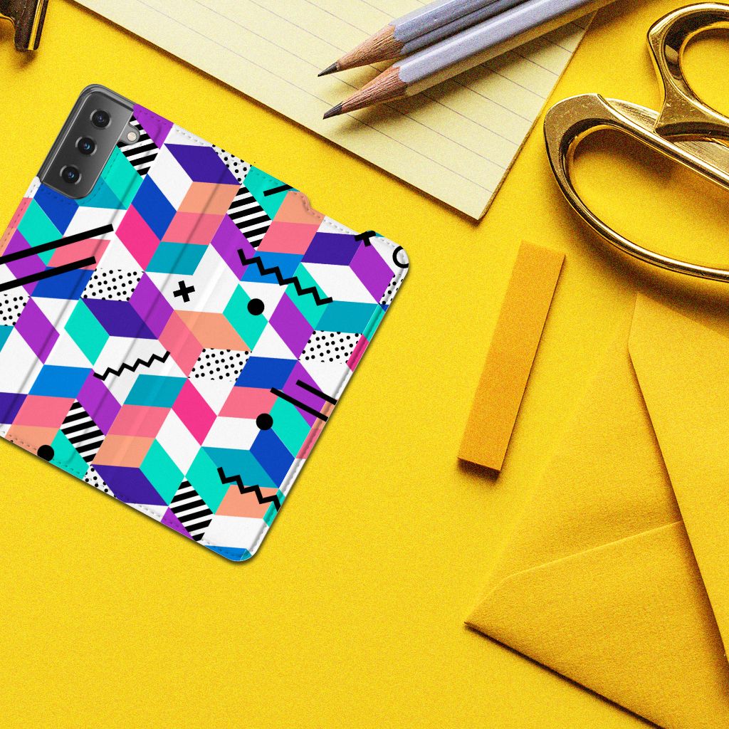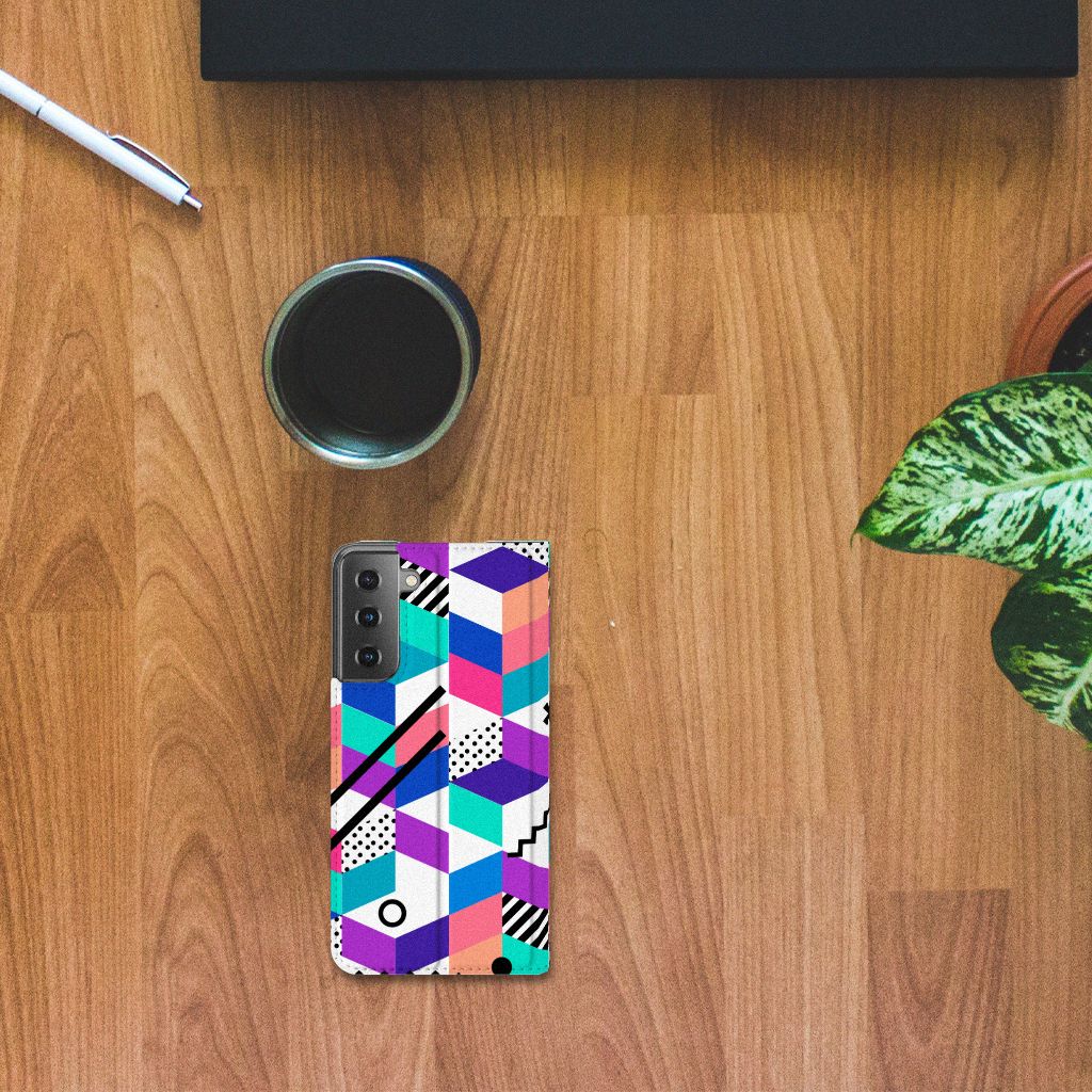 Samsung Galaxy S21 Stand Case Blokken Kleurrijk