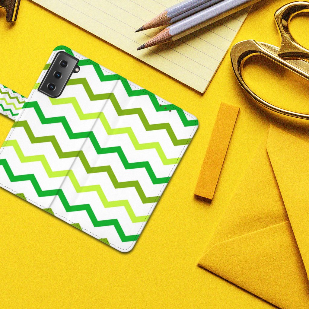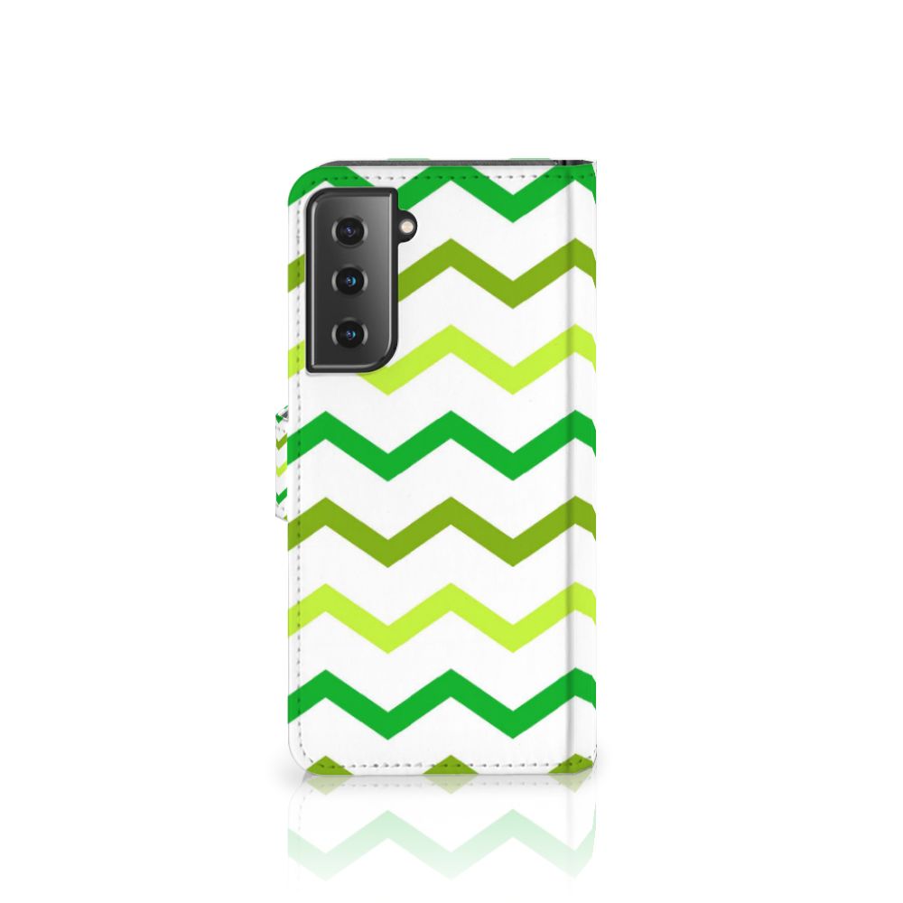 Samsung Galaxy S21 Telefoon Hoesje Zigzag Groen