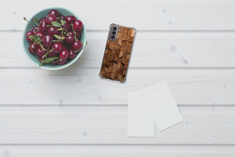 Stevig Telefoonhoesje voor Samsung Galaxy S21 Wooden Cubes