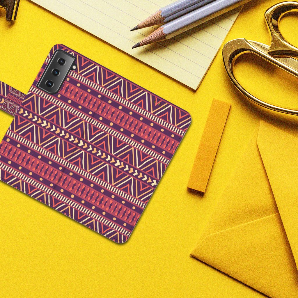Samsung Galaxy S21 Telefoon Hoesje Aztec Paars
