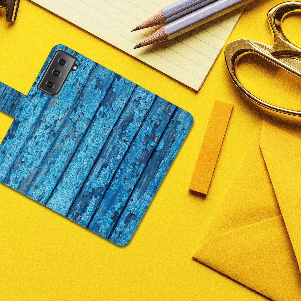 Samsung Galaxy S21 Book Style Case Wood Blue