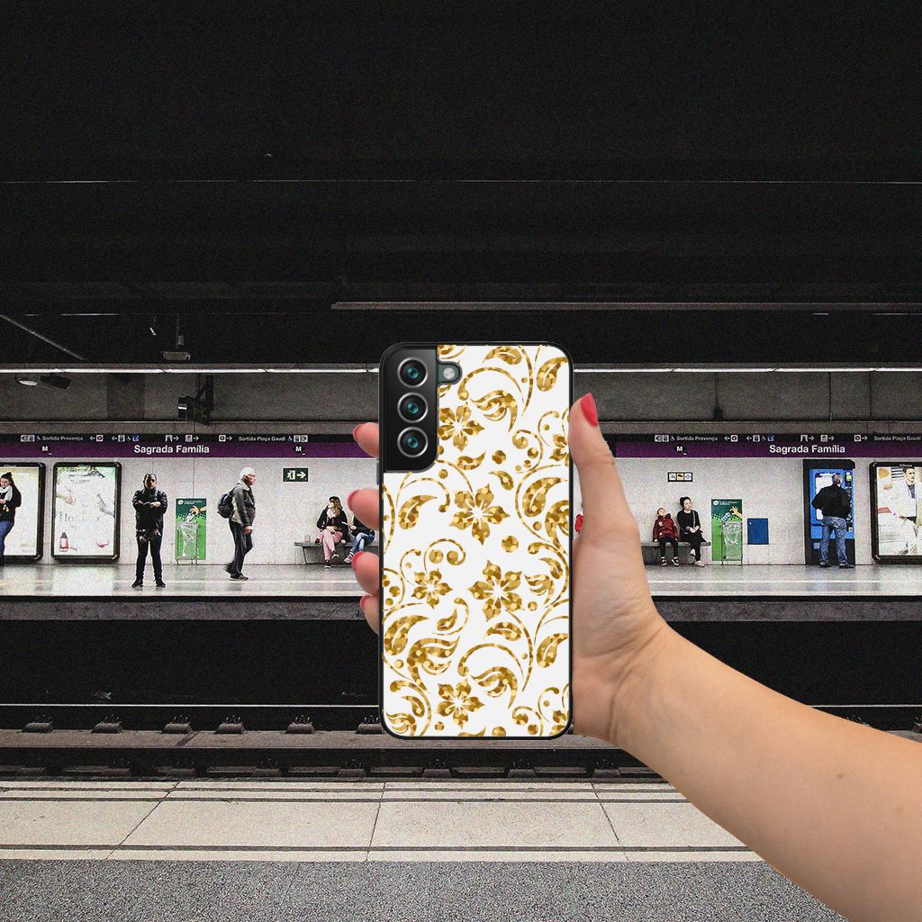 Samsung Galaxy S22 Plus Bloemen Hoesje Gouden Bloemen