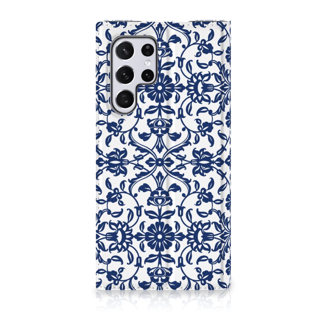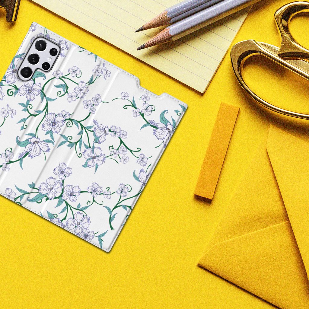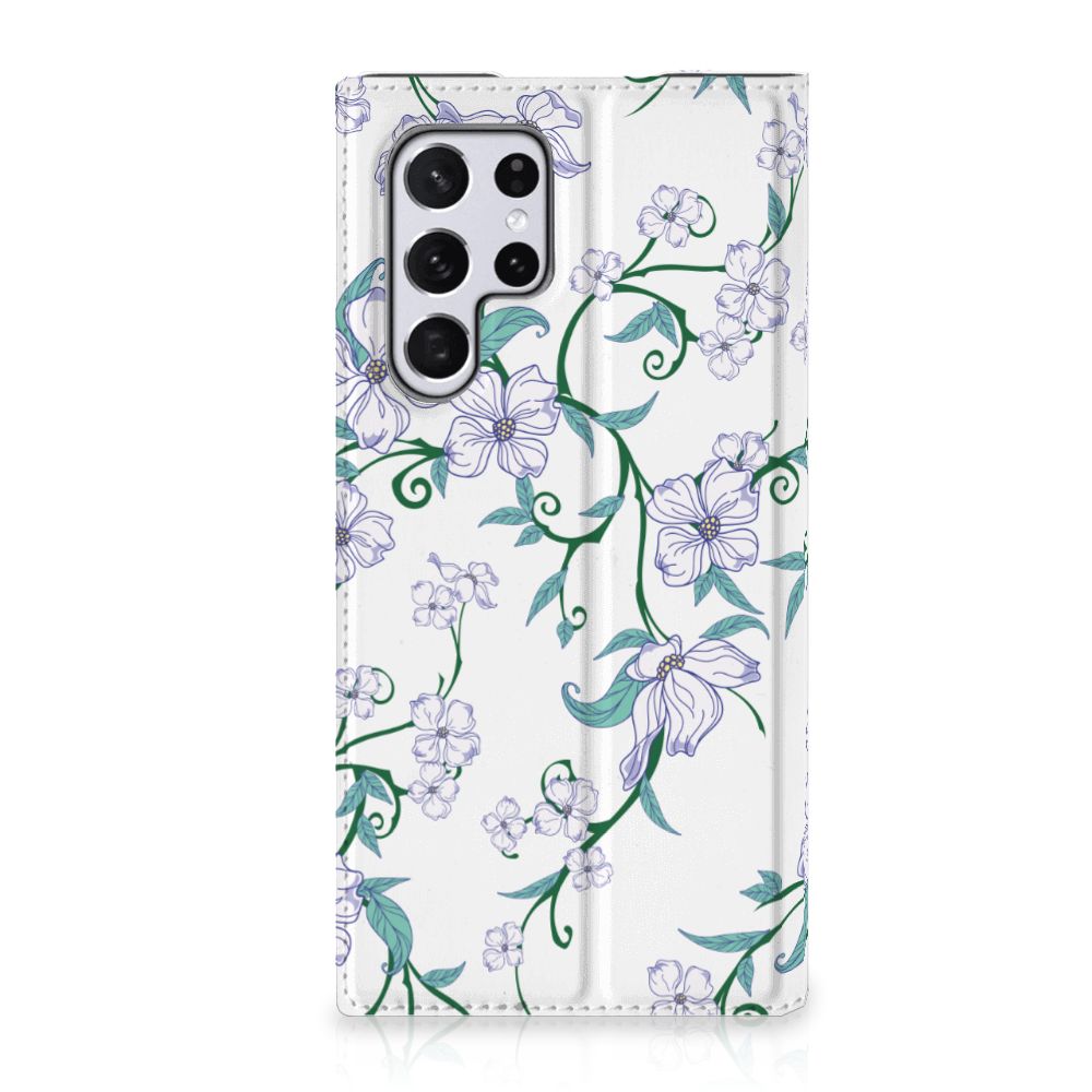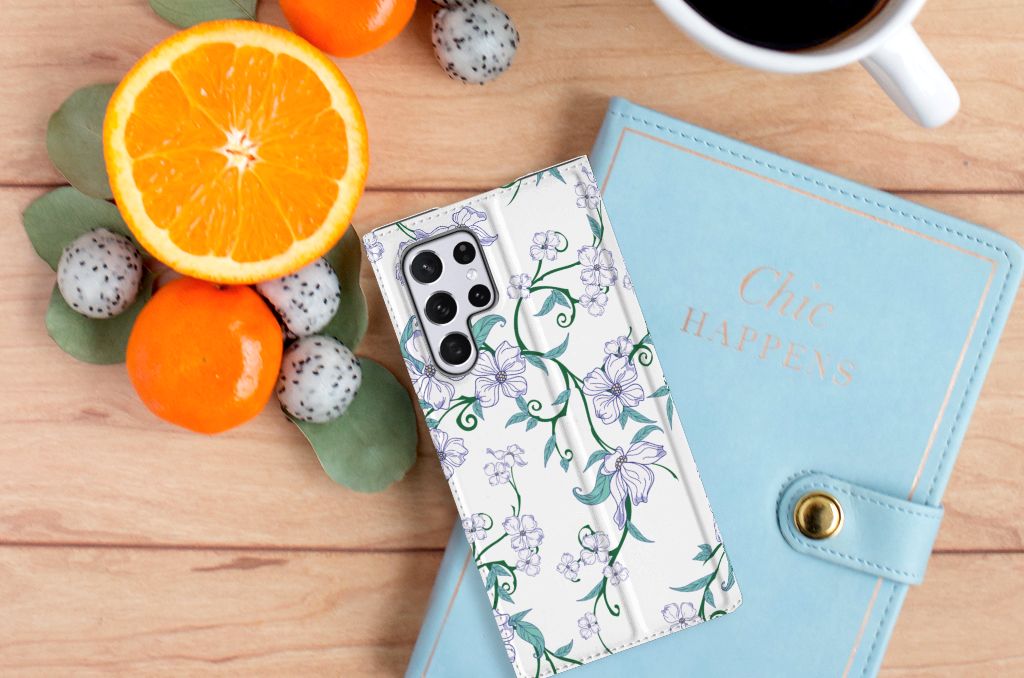 Samsung Galaxy S22 Ultra Portemonnee Hoesje Flowers Blue DTMP