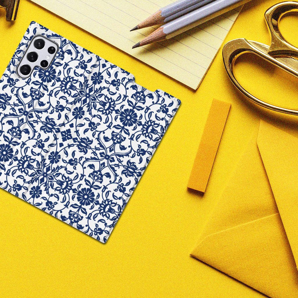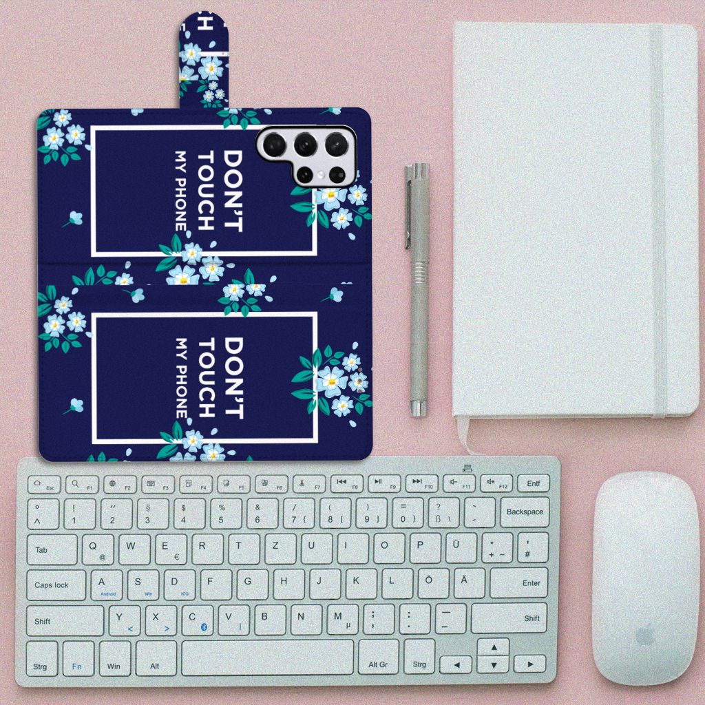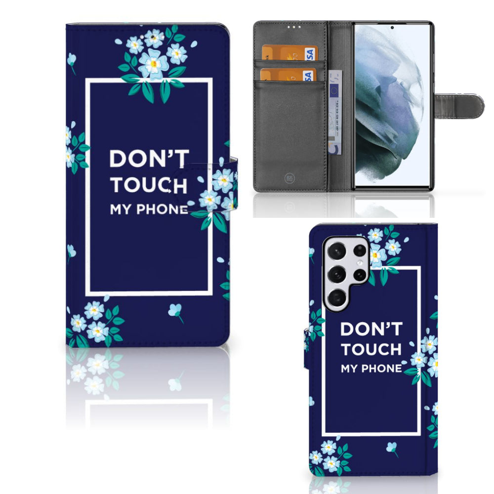 Samsung Galaxy S22 Ultra Portemonnee Hoesje Flowers Blue DTMP