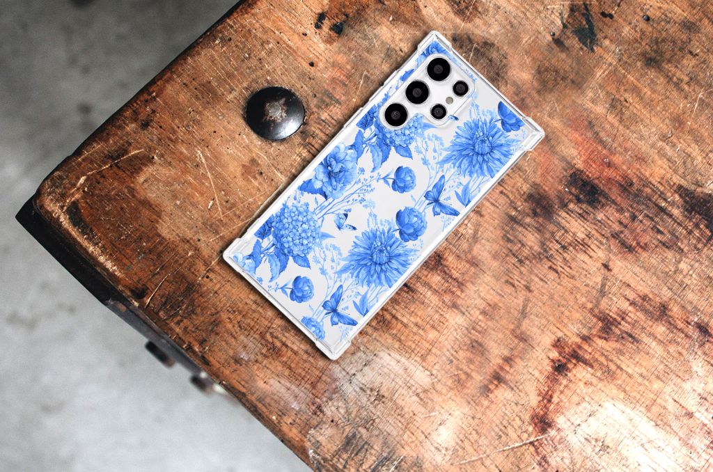 Case voor Samsung Galaxy S22 Ultra Flowers Blue
