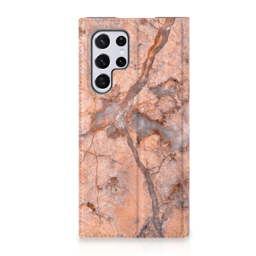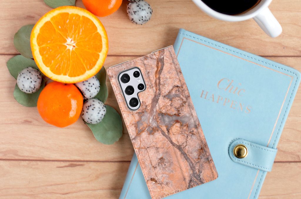 Samsung Galaxy S22 Ultra Standcase Marmer Oranje