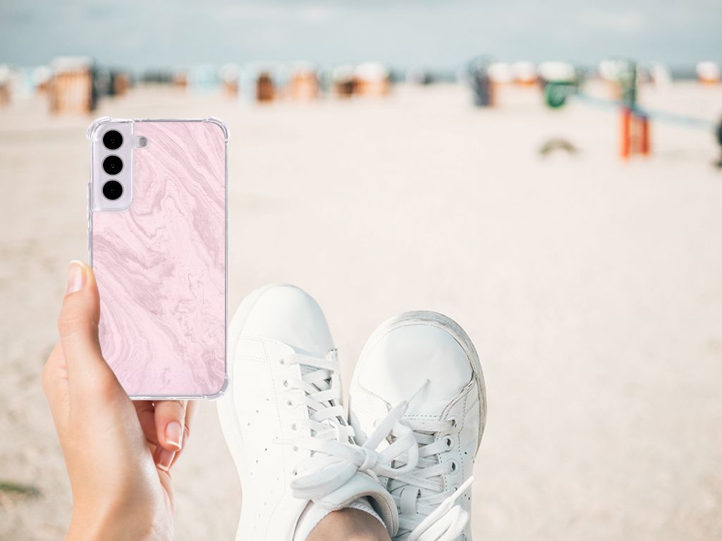 Samsung Galaxy S22 Anti-Shock Hoesje Marble Pink - Origineel Cadeau Vriendin
