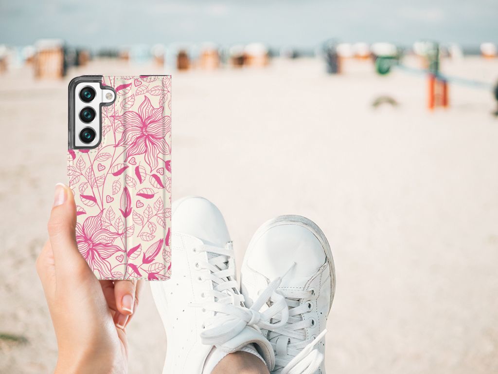Samsung Galaxy S22 Portemonnee Hoesje Flowers Pink DTMP