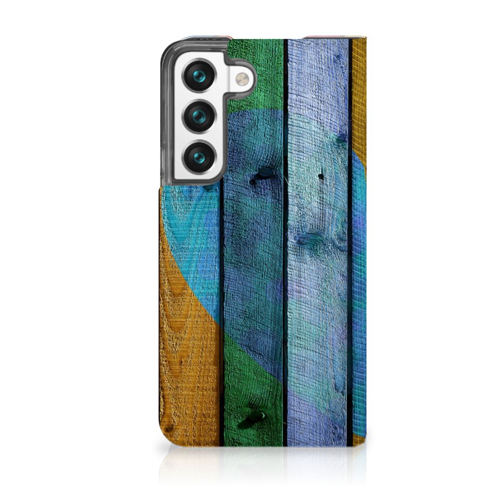 Samsung Galaxy S22 Book Wallet Case Wood Heart - Cadeau voor je Vriend