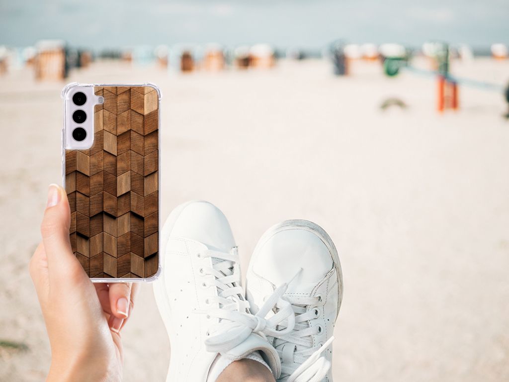 Stevig Telefoonhoesje voor Samsung Galaxy S22 Wooden Cubes