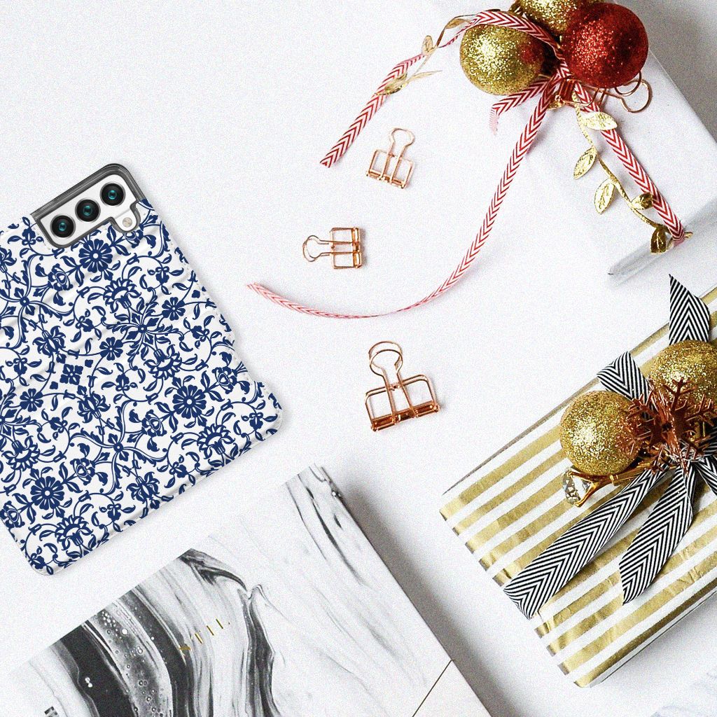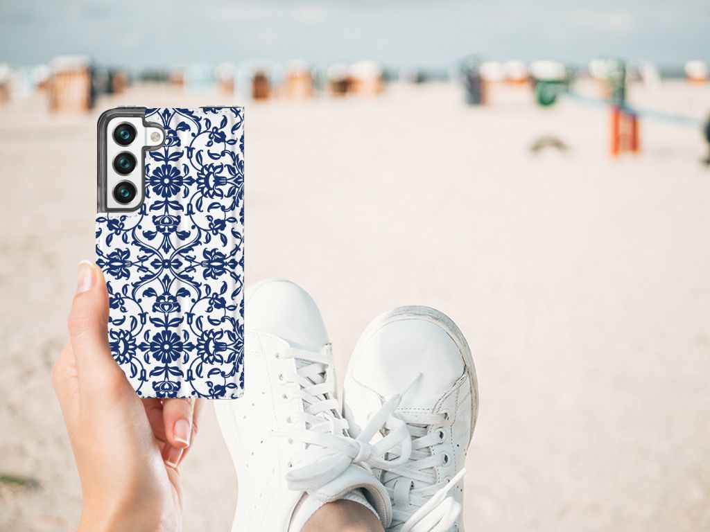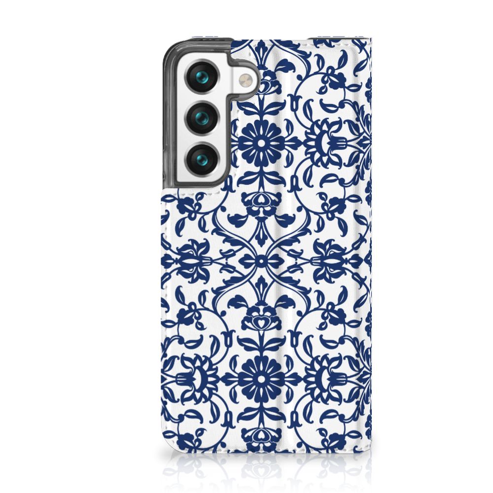 Samsung Galaxy S22 Bloemen Hoesje Leaves Blue