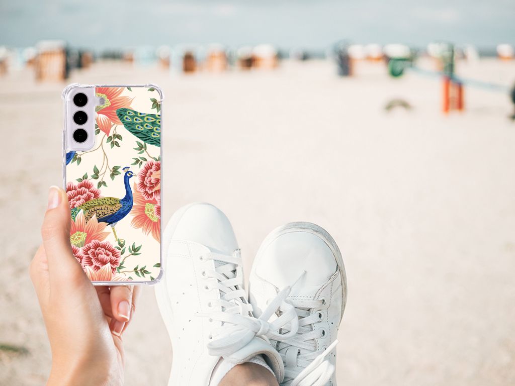 Case Anti-shock voor Samsung Galaxy S22 Pink Peacock