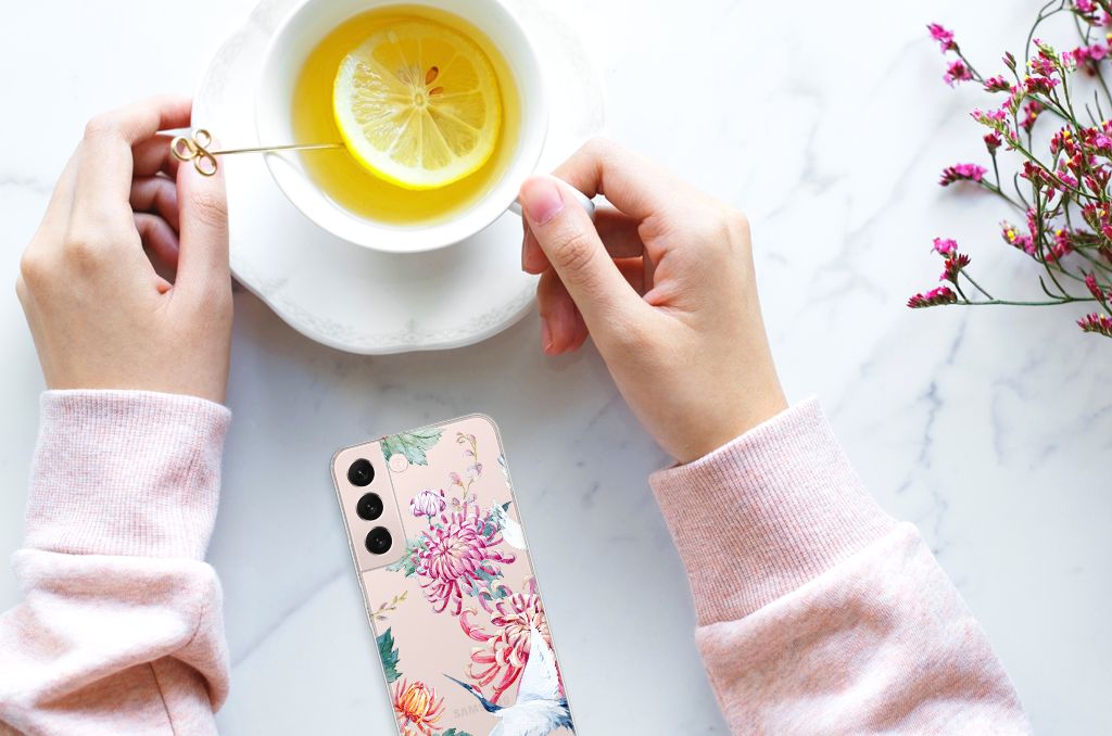 Samsung Galaxy S22 TPU Hoesje Bird Flowers
