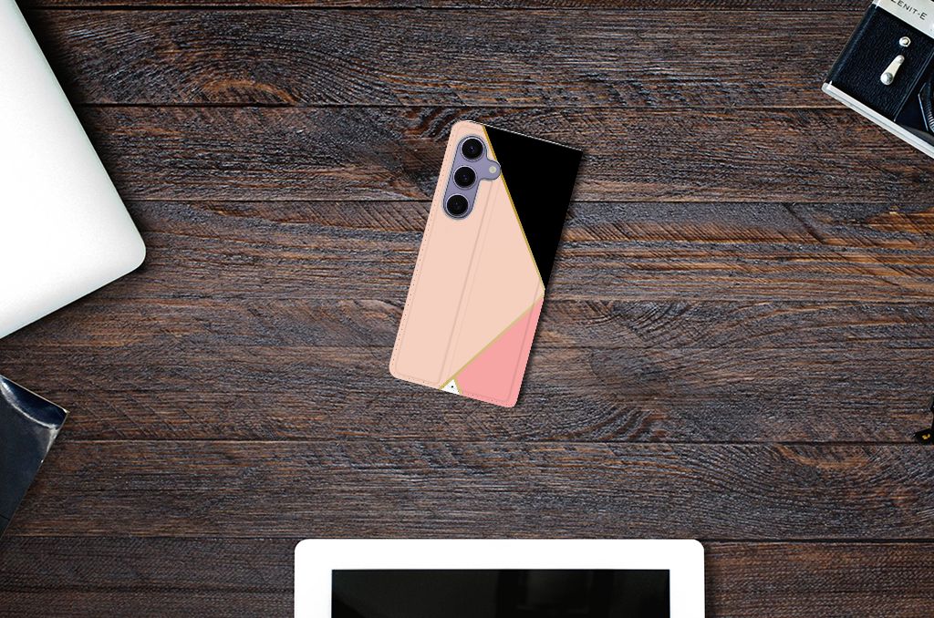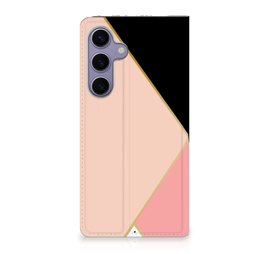 Samsung Galaxy S24 Plus Stand Case Zwart Roze Vormen