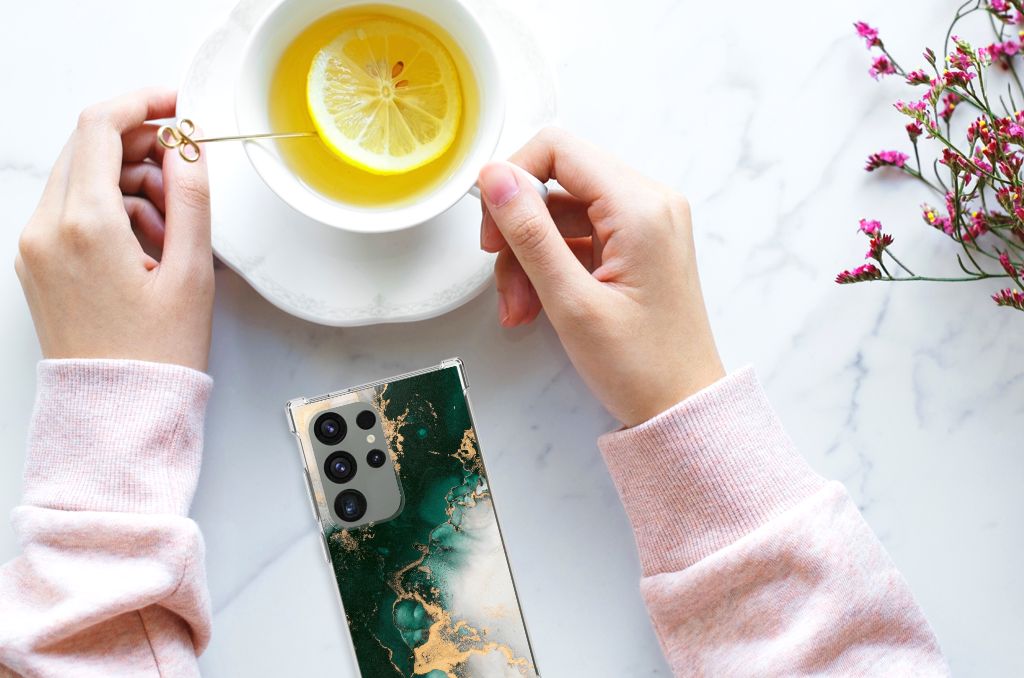 TPU Siliconen Hoesje voor Samsung Galaxy S24 Ultra Marmer Groen