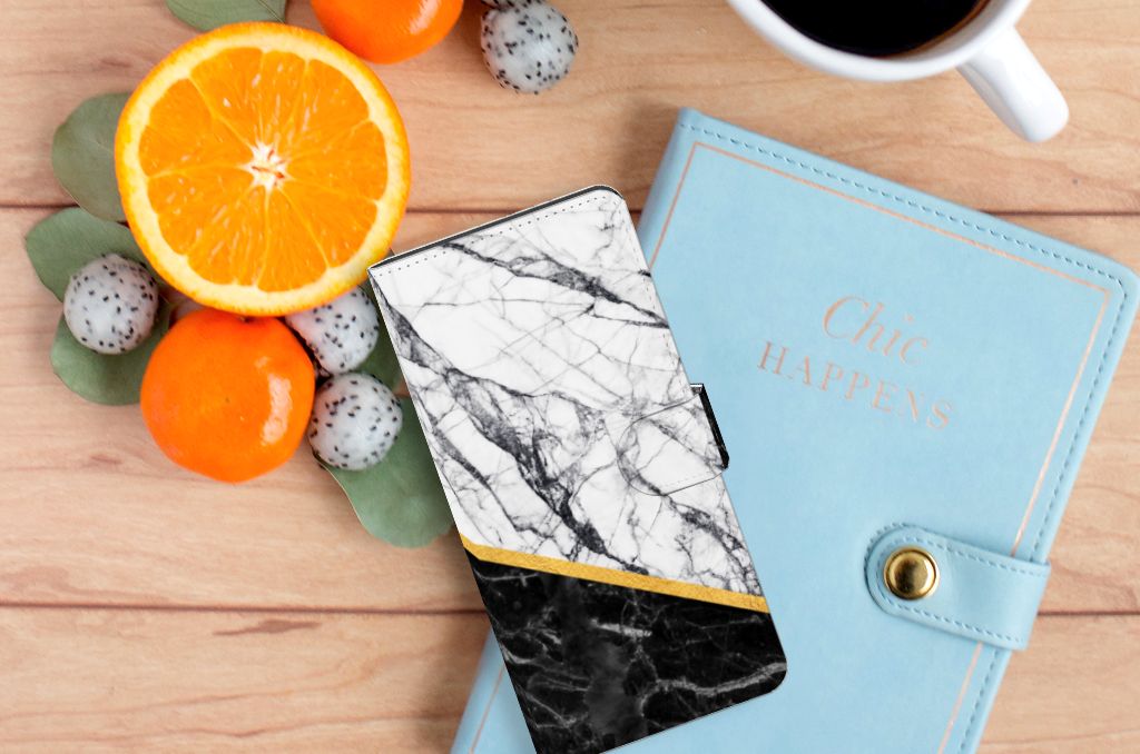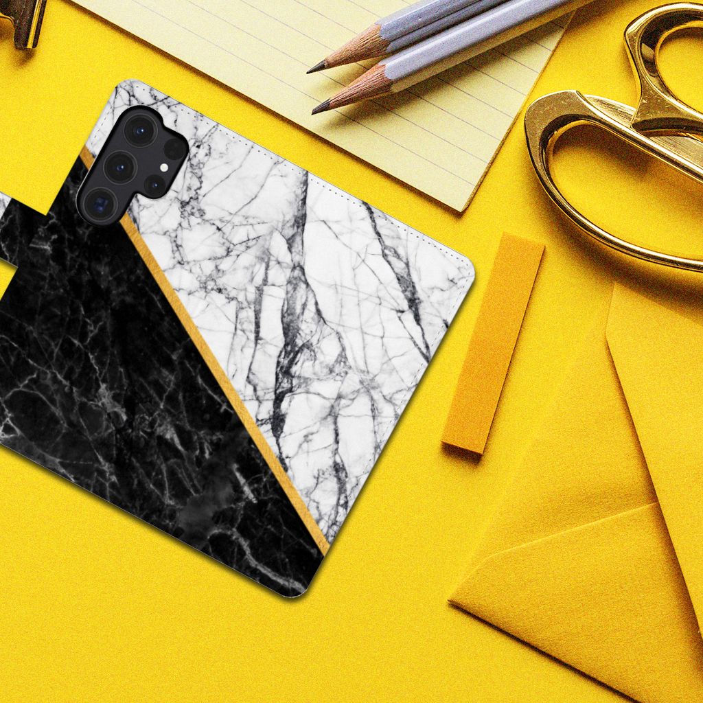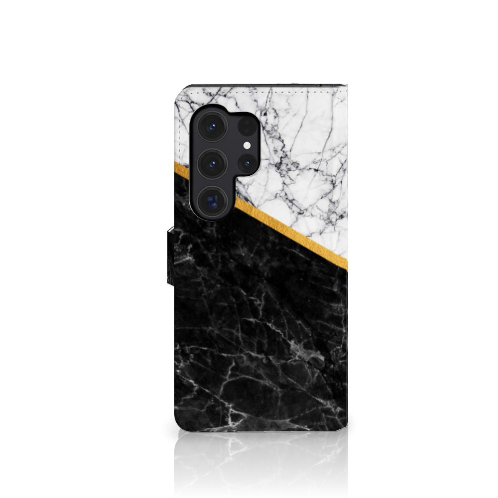 Samsung Galaxy S24 Ultra Bookcase Marmer Wit Zwart - Origineel Cadeau Man