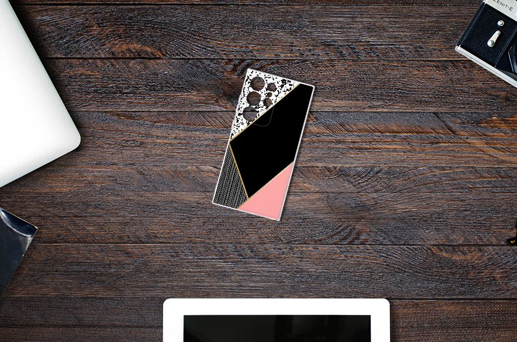 Samsung Galaxy S24 Ultra TPU Hoesje Zwart Roze Vormen