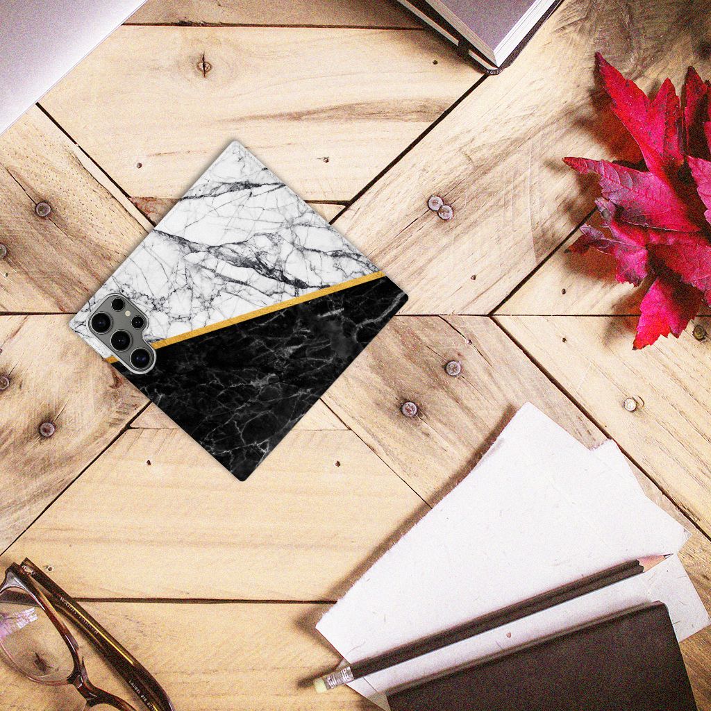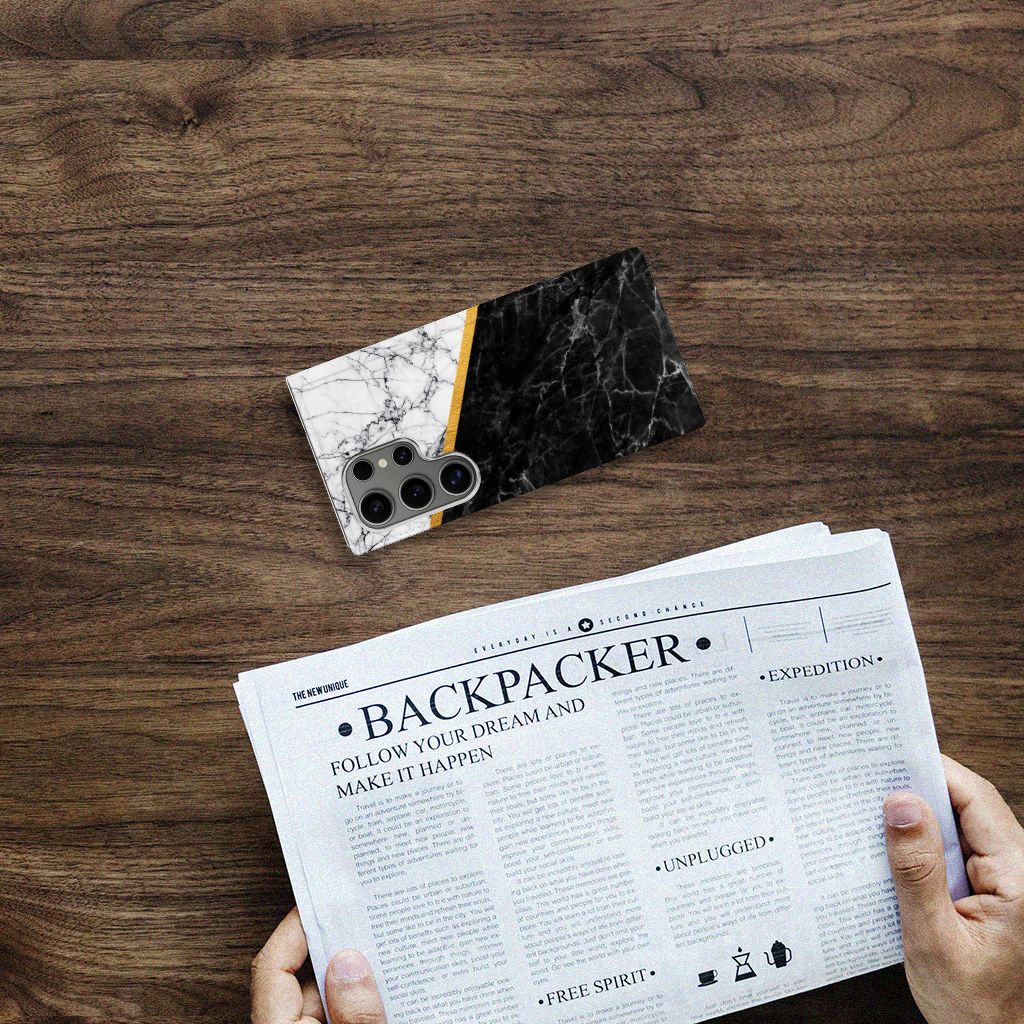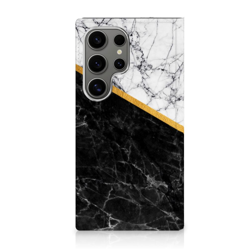 Samsung Galaxy S24 Ultra Standcase Marmer Wit Zwart - Origineel Cadeau Man