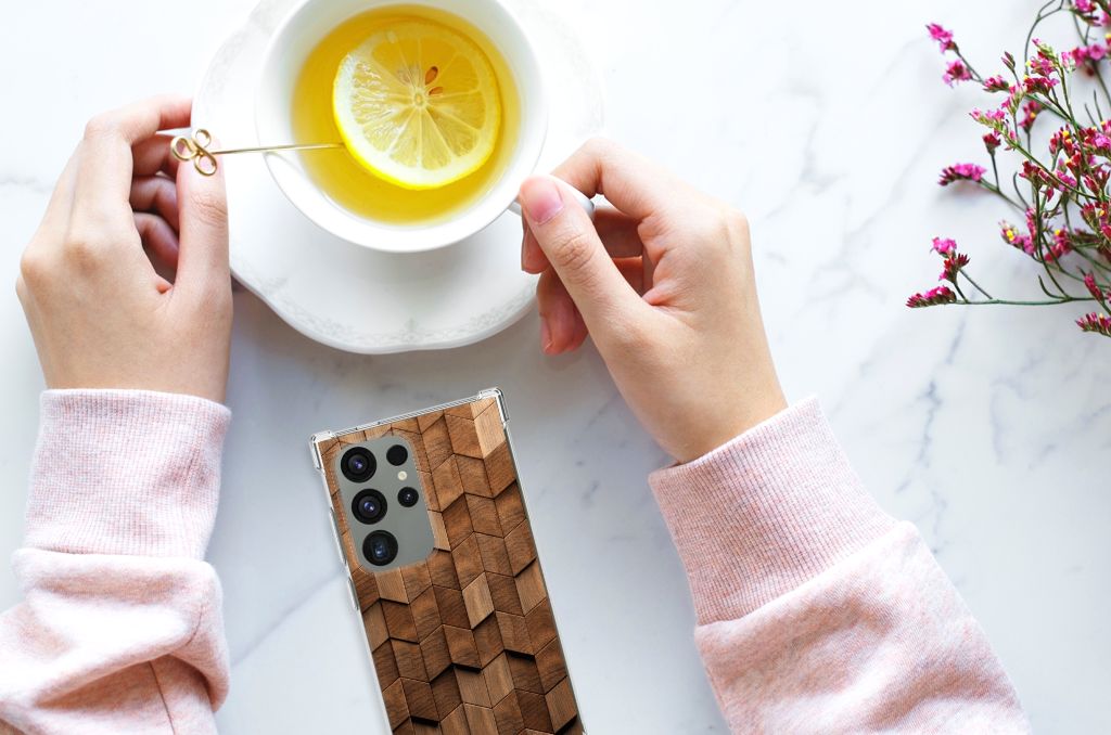 Stevig Telefoonhoesje voor Samsung Galaxy S24 Ultra Wooden Cubes