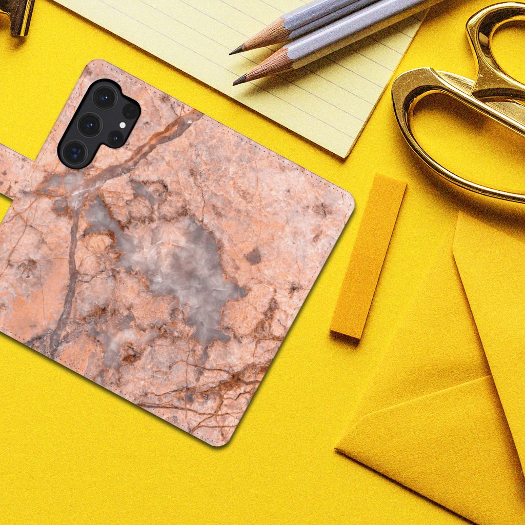 Samsung Galaxy S24 Ultra Bookcase Marmer Oranje