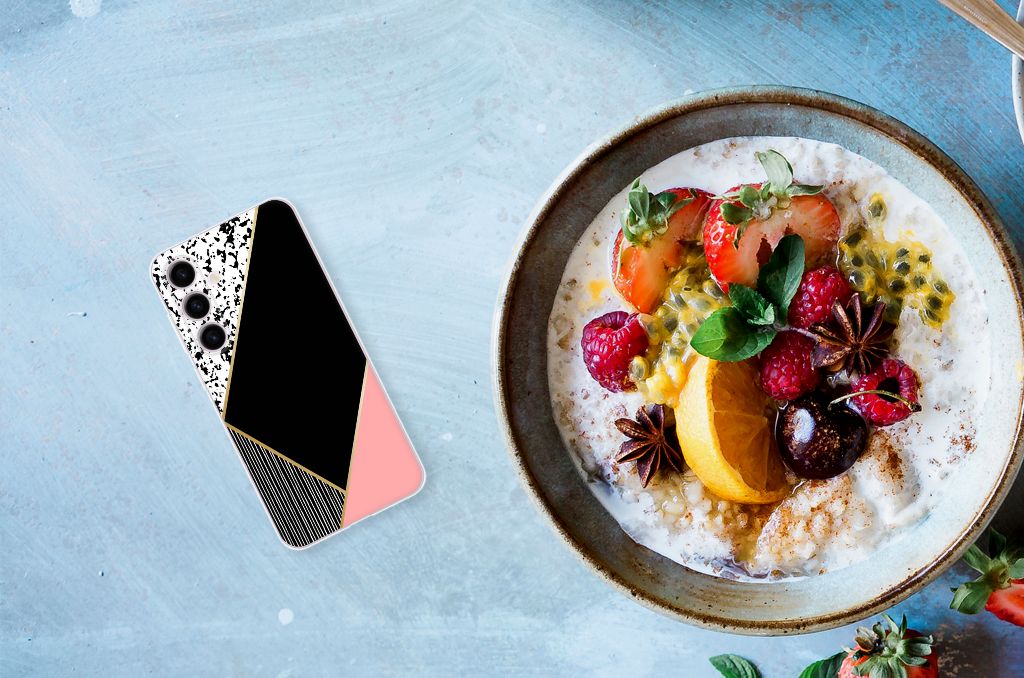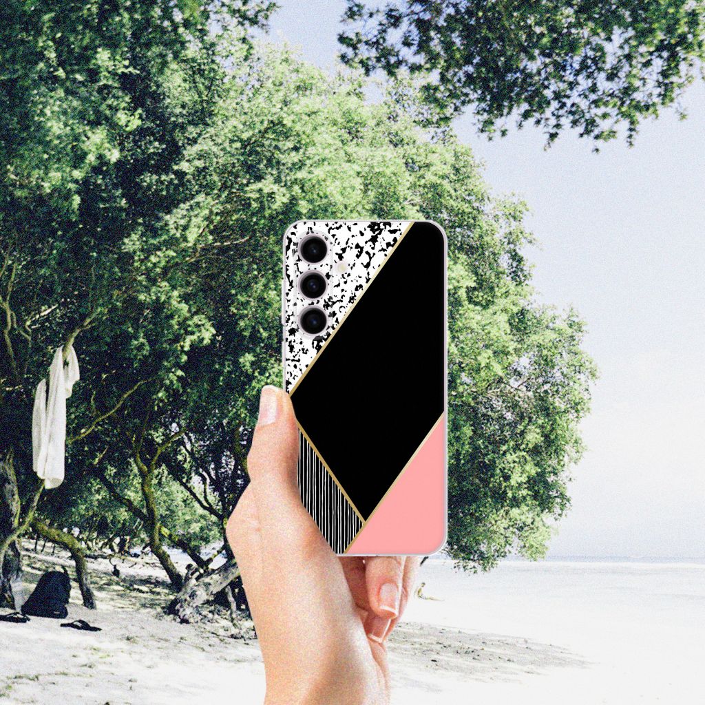 Samsung Galaxy S24 TPU Hoesje Zwart Roze Vormen