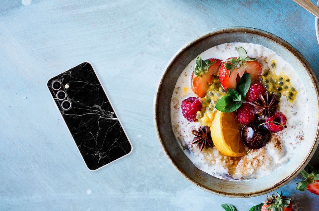Samsung Galaxy S24 TPU Siliconen Hoesje Marmer Zwart - Origineel Cadeau Vader