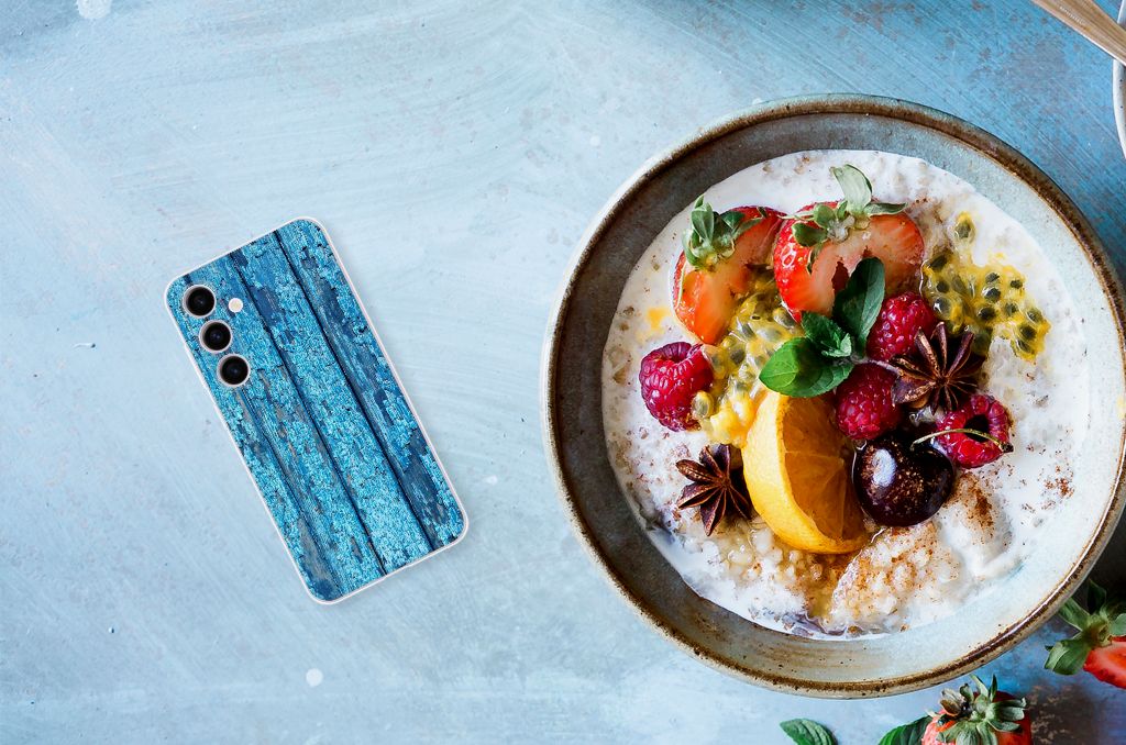 Samsung Galaxy S24 Bumper Hoesje Wood Blue