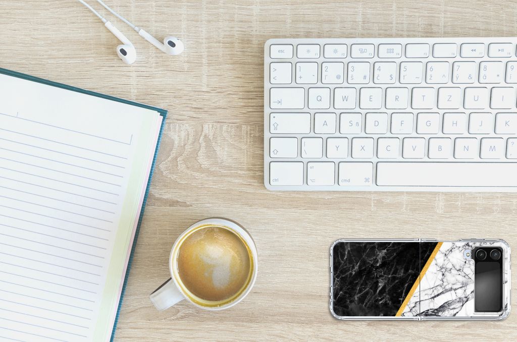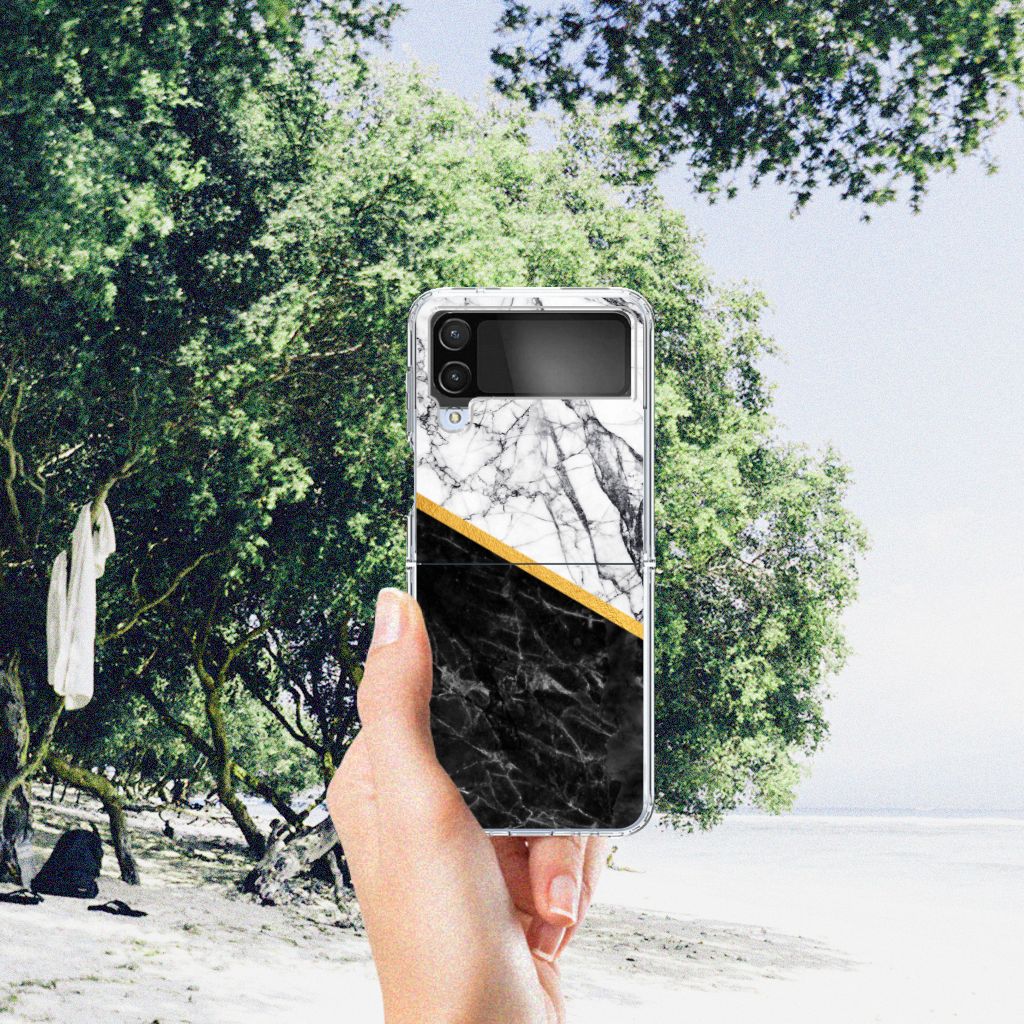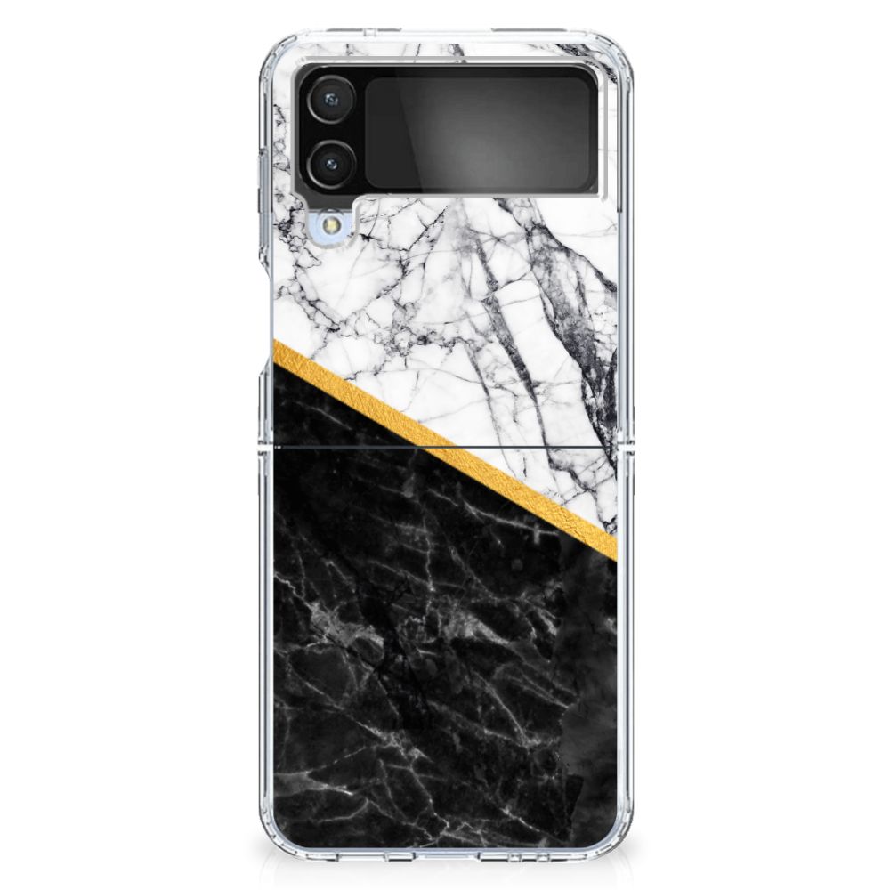 Samsung Galaxy Z Flip 4 TPU Siliconen Hoesje Marmer Wit Zwart - Origineel Cadeau Man