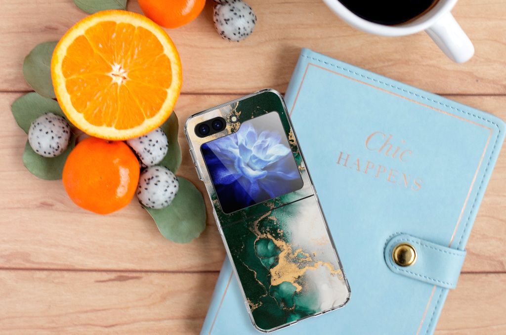 TPU Siliconen Hoesje voor Samsung Galaxy Z Flip 5 Marmer Groen
