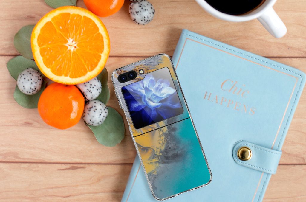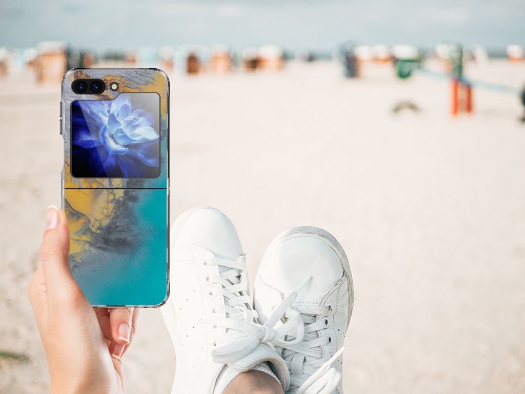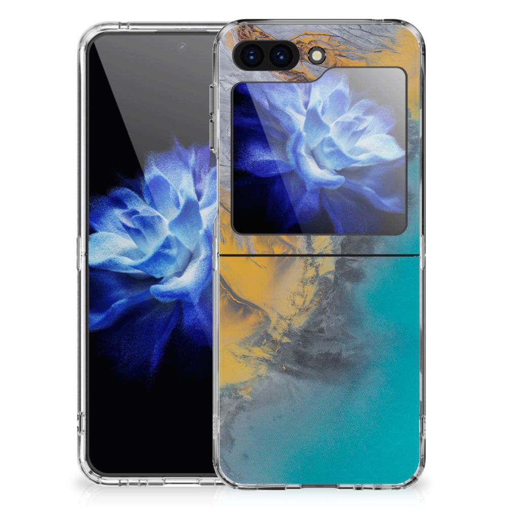 Samsung Galaxy Z Flip 5 TPU Siliconen Hoesje Marble Blue Gold