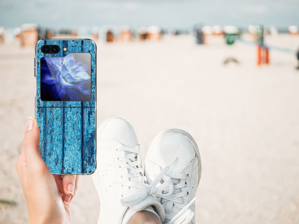 Samsung Galaxy Z Flip 5 Bumper Hoesje Wood Blue