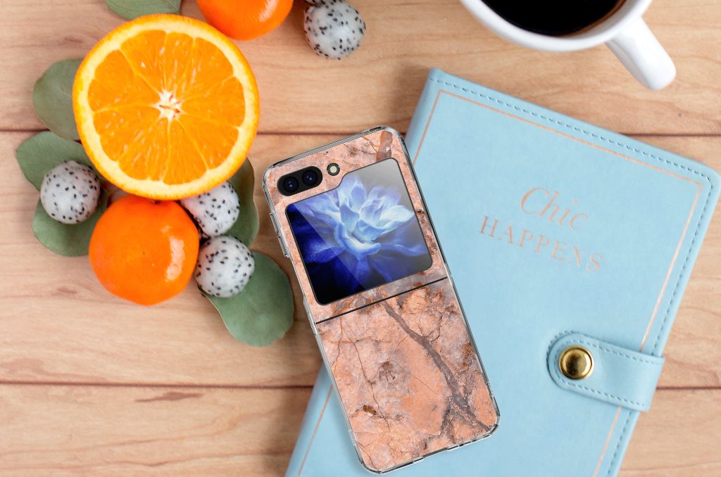 Samsung Galaxy Z Flip 5 TPU Siliconen Hoesje Marmer Oranje