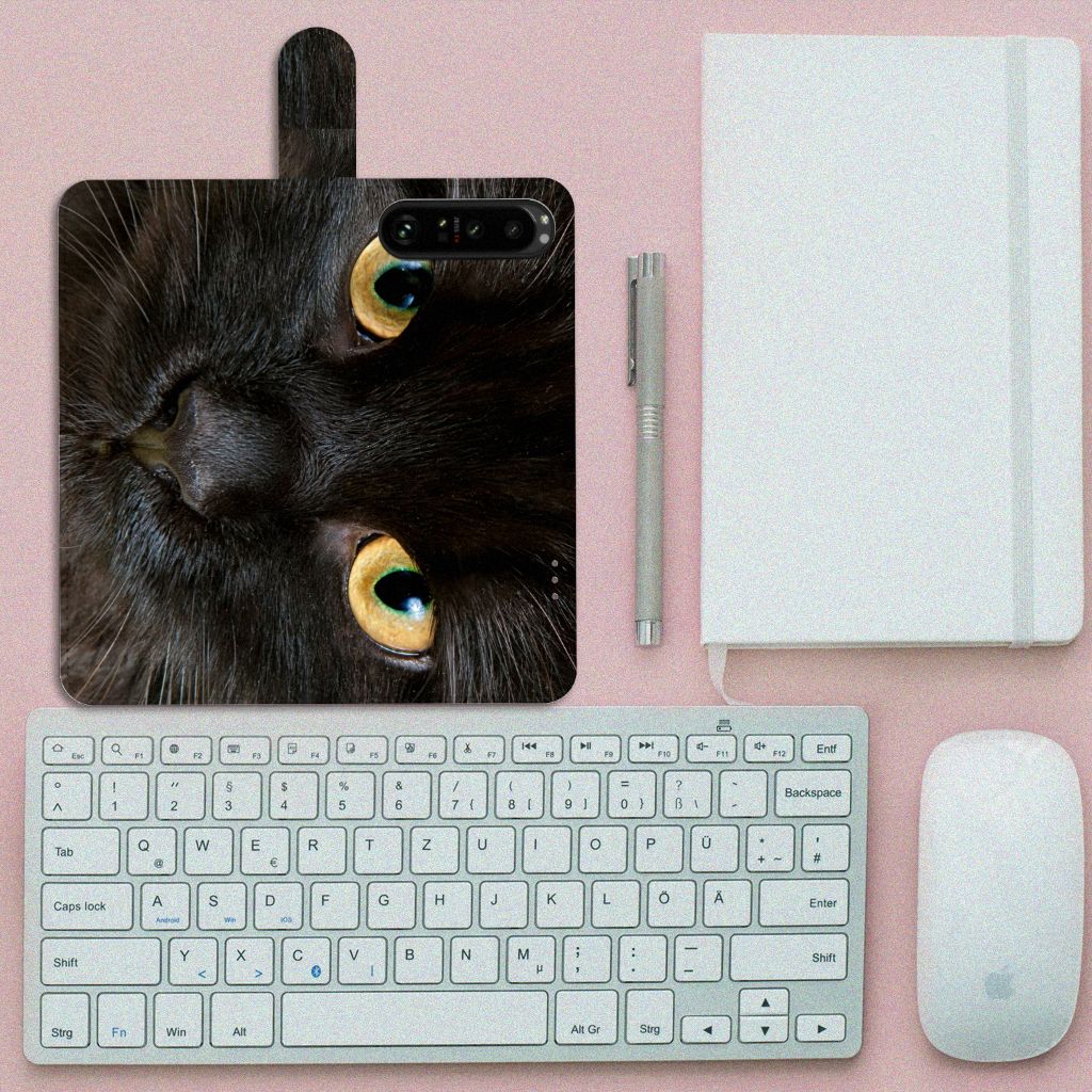 Sony Xperia 1 IV Telefoonhoesje met Pasjes Zwarte Kat
