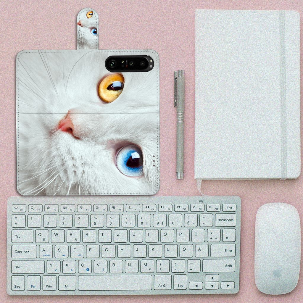 Sony Xperia 1 IV Telefoonhoesje met Pasjes Witte Kat