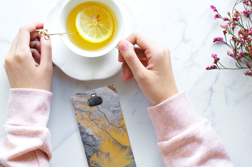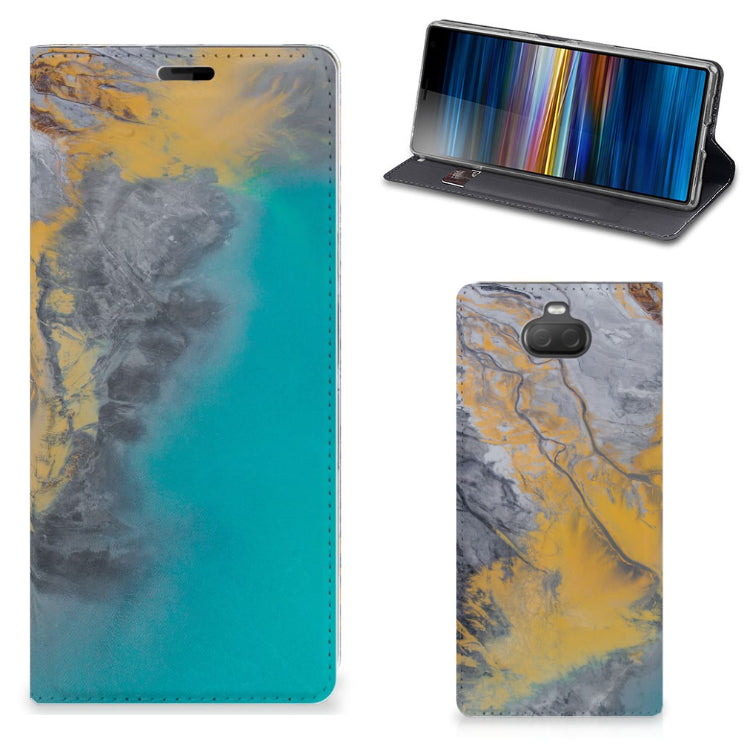Sony Xperia 10 Plus Standcase Marble Blue Gold