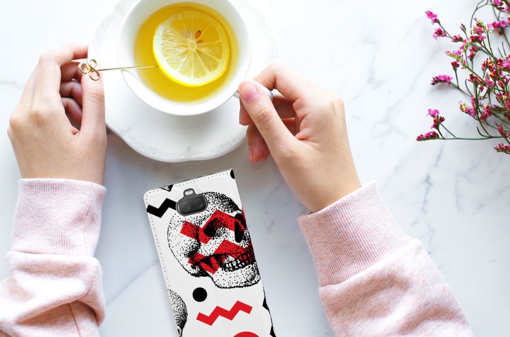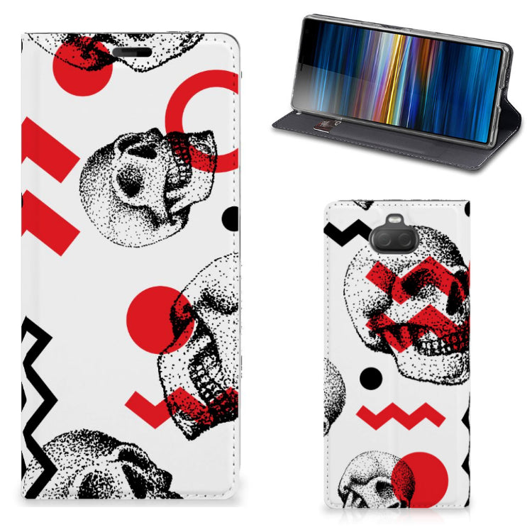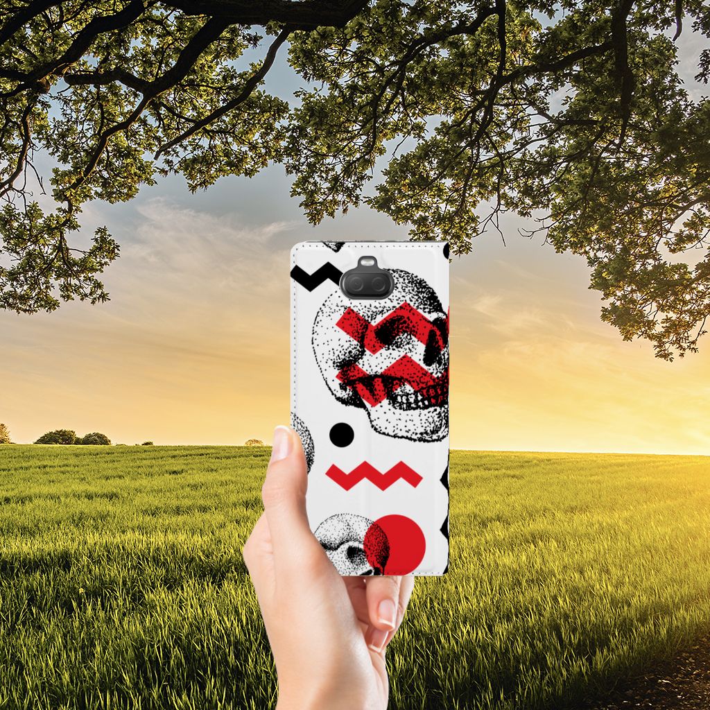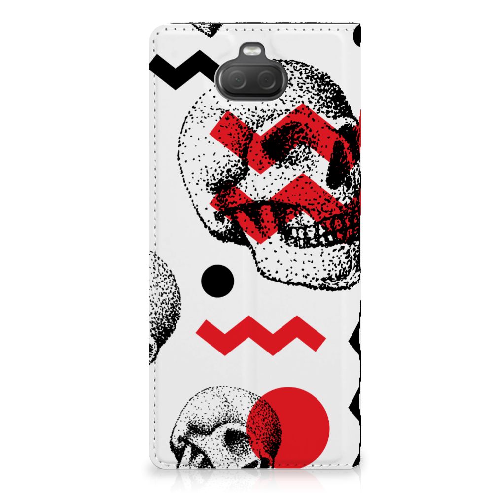 Mobiel BookCase Sony Xperia 10 Plus Skull Red
