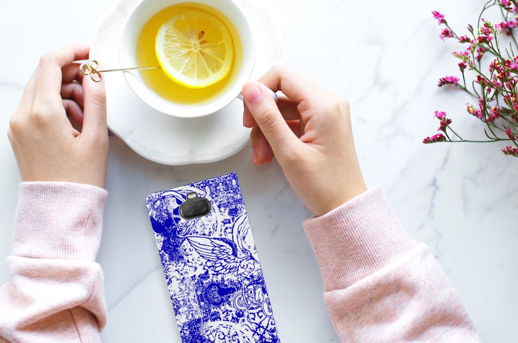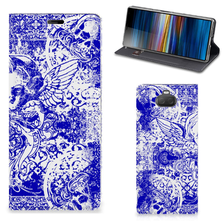 Mobiel BookCase Sony Xperia 10 Plus Angel Skull Blauw