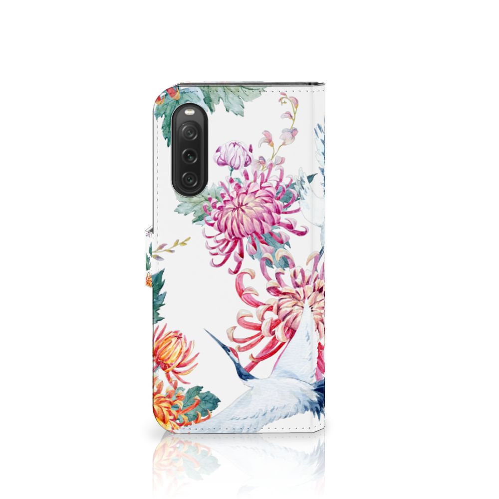 Sony Xperia 10 V Telefoonhoesje met Pasjes Bird Flowers