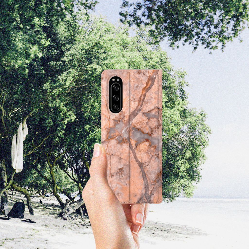 Sony Xperia 5 Standcase Marmer Zwart - Origineel Cadeau Vader