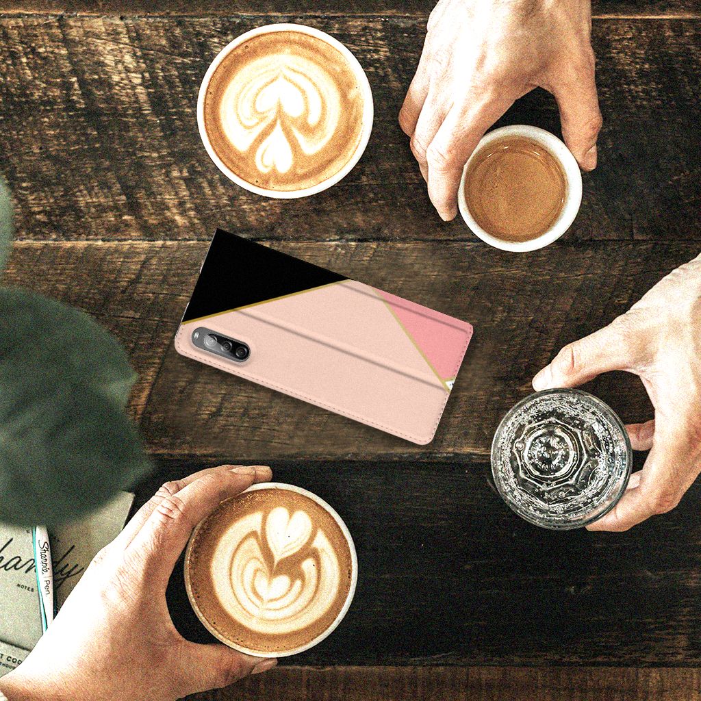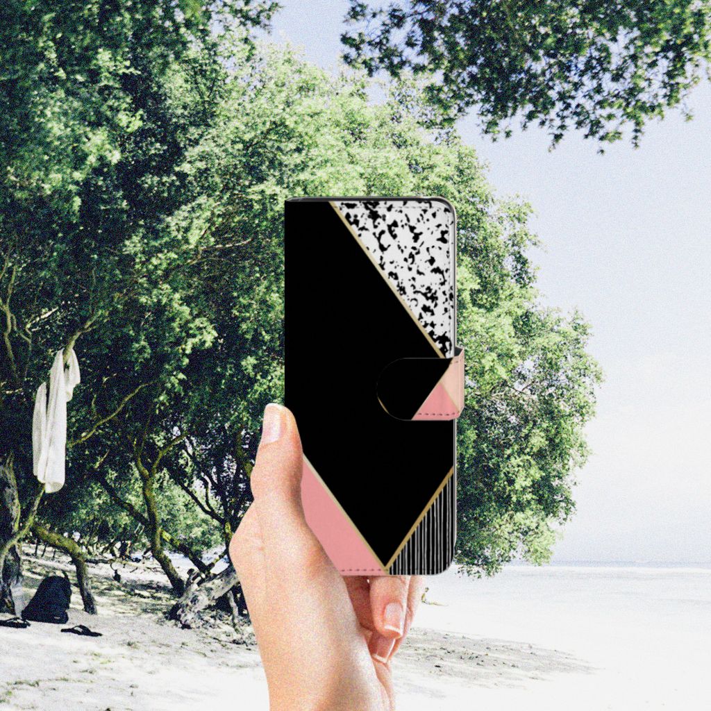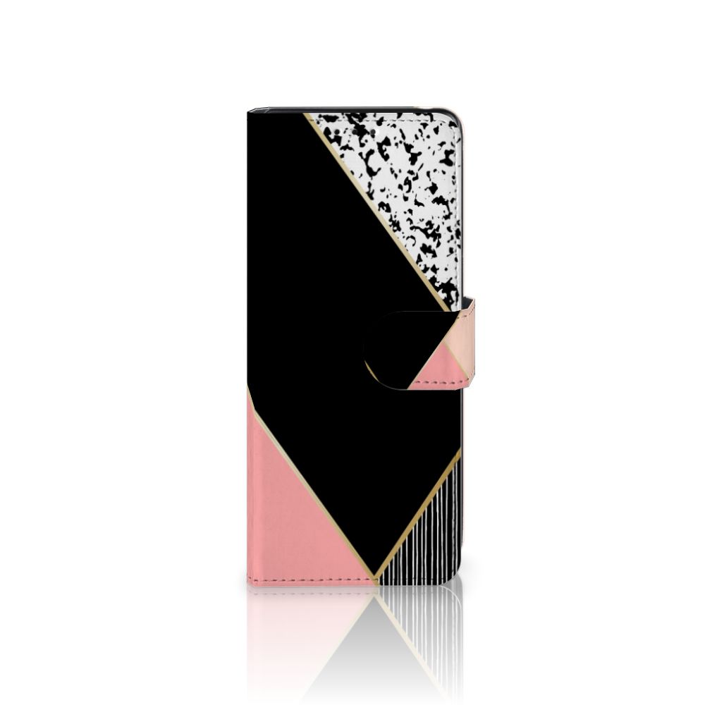 Sony Xperia L4 Book Case Zwart Roze Vormen